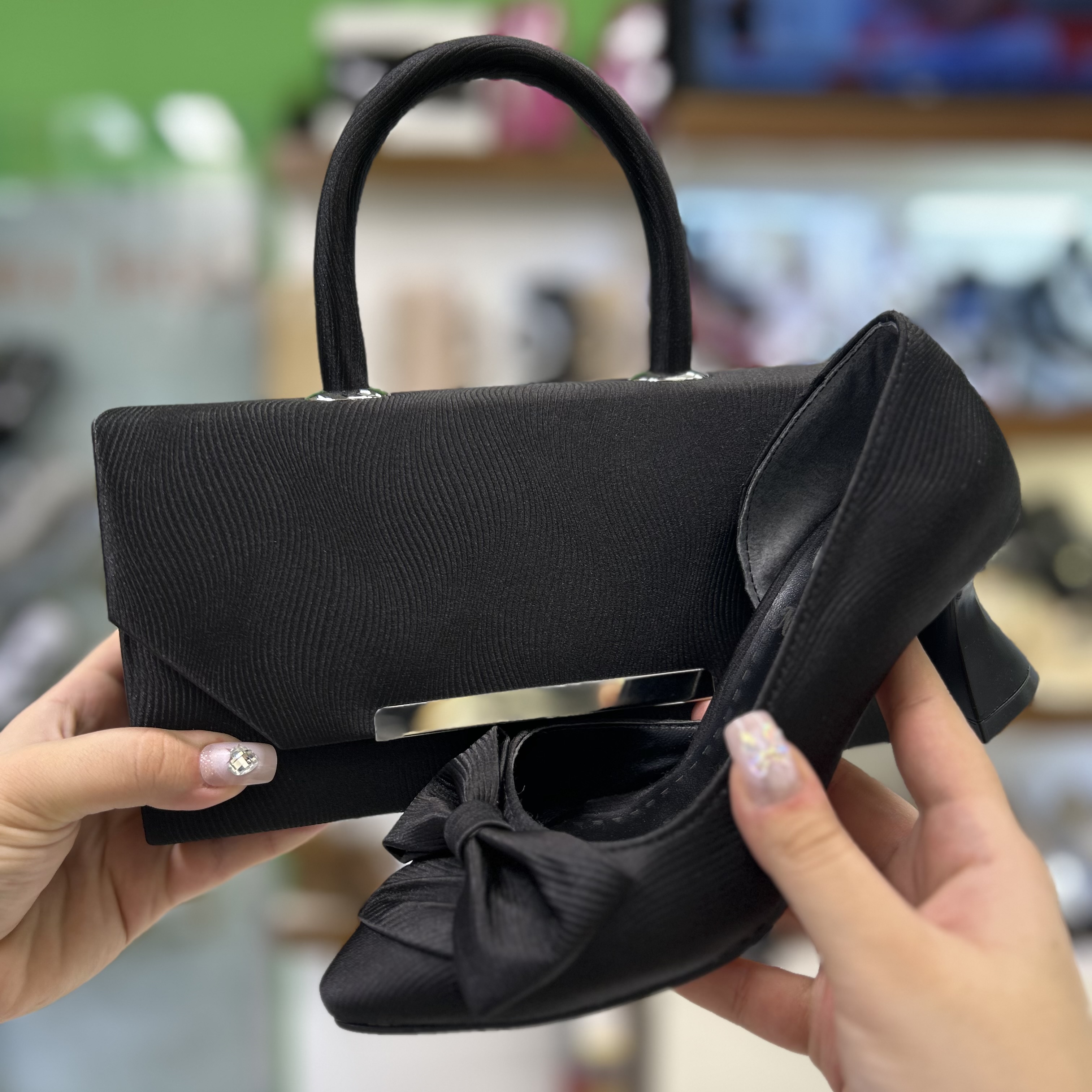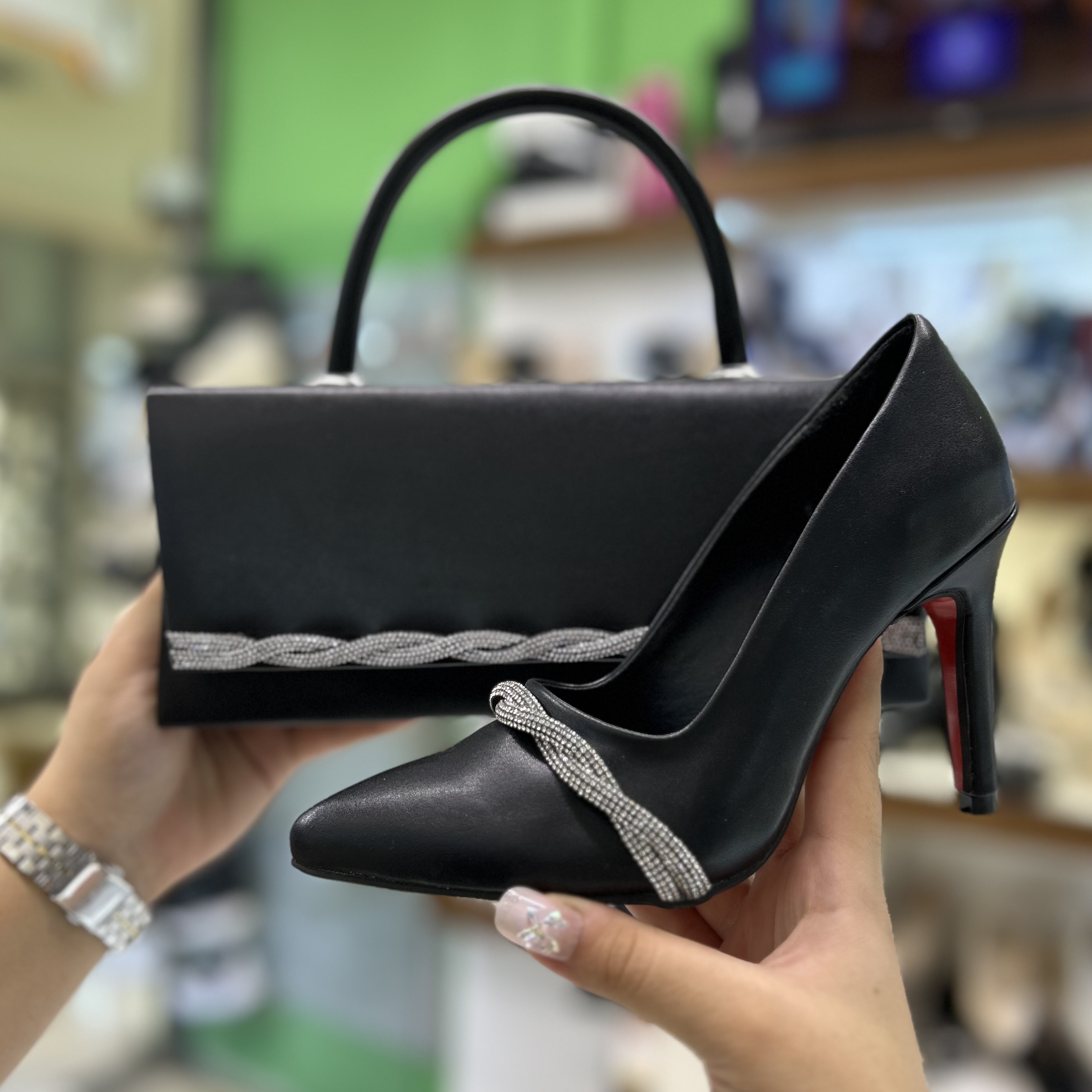 ست کیف و کفش زنانه مجلسی مشکی کد ۳۹