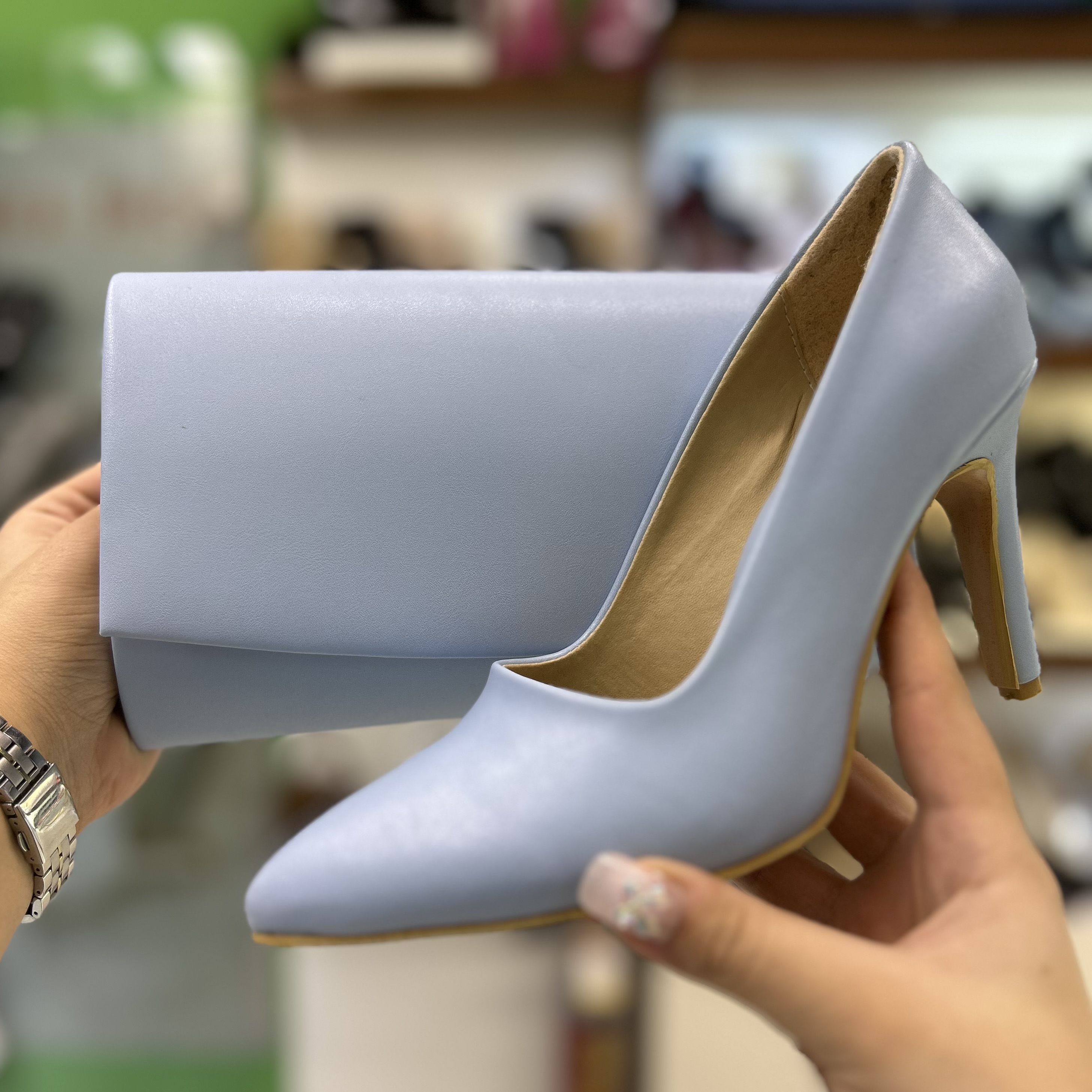 ست کیف و کفش زنانه پاشنه دار آبی آسمانی کد ۲۹