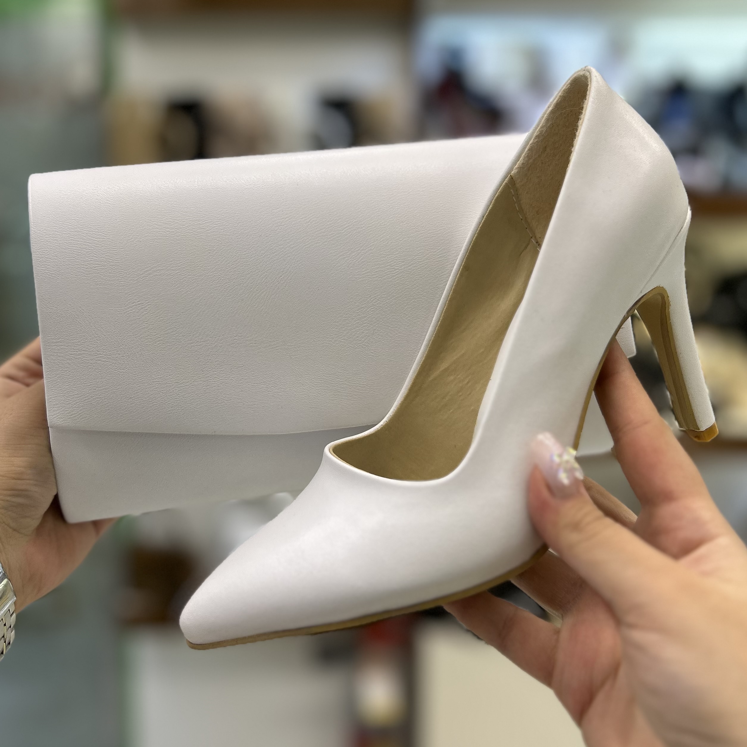 ست کیف و کفش سفید عروس پاشنه ۱۰ سانت کد ۶۵/۱