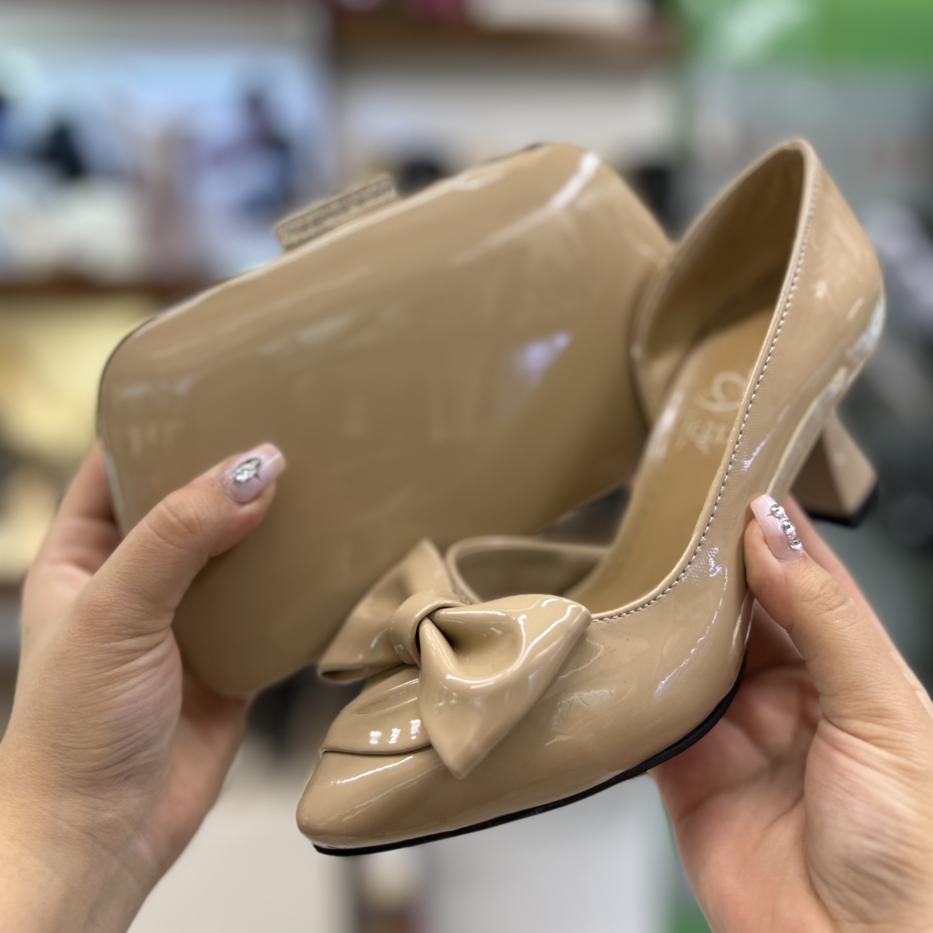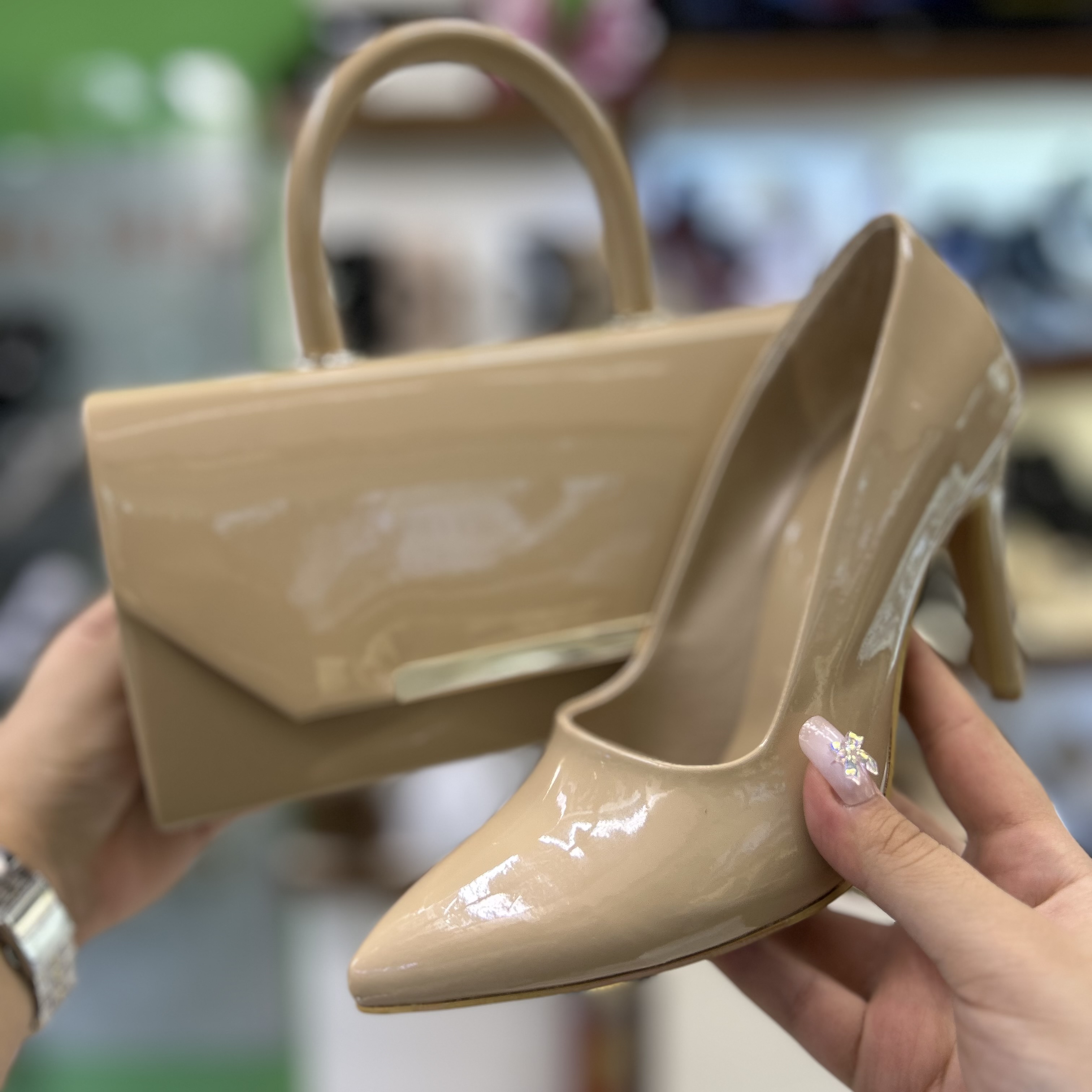 ست کیف و کفش زنانه مجلسی ورنی کاراملی