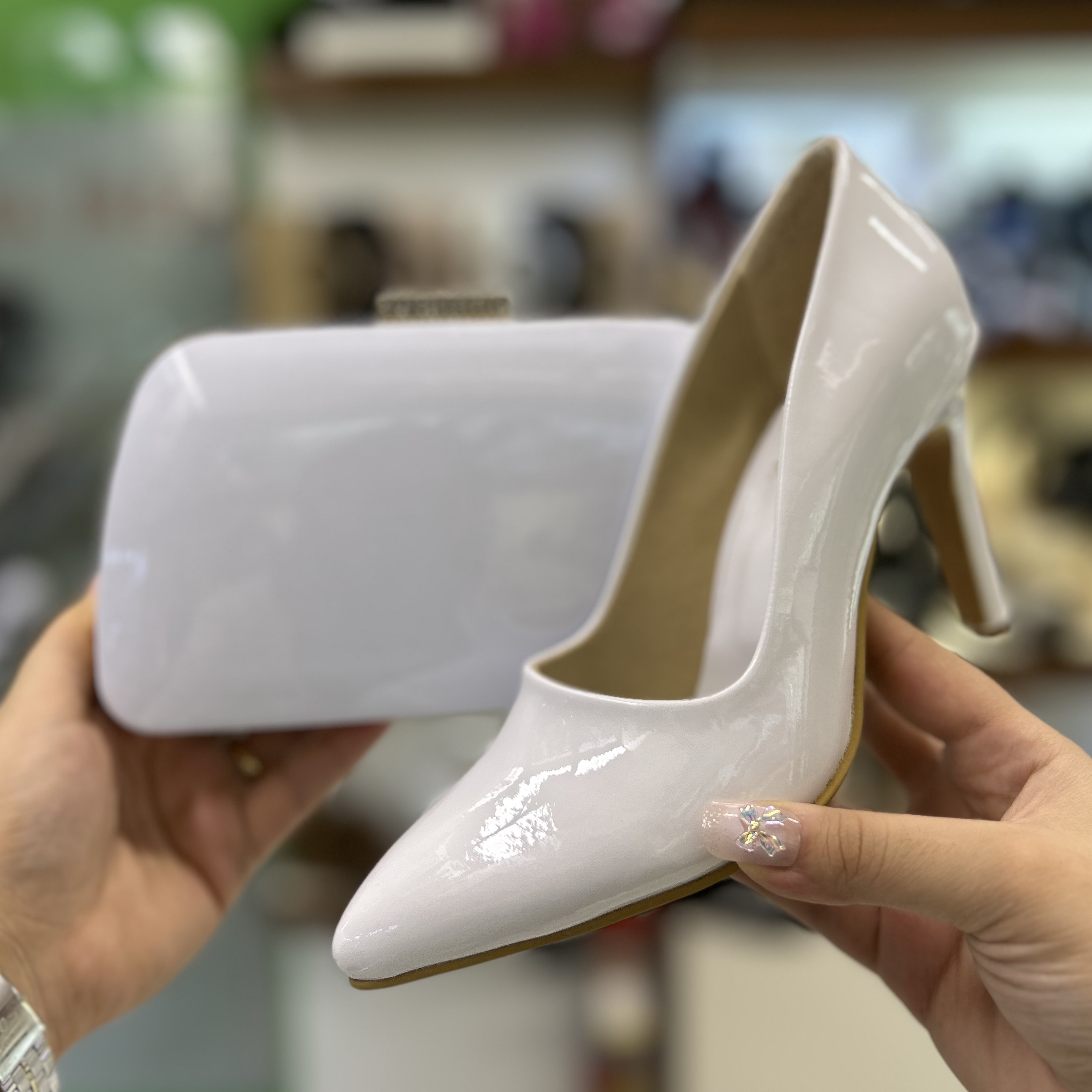 ست کیف و کفش ورنی سفید عروس کد ۴۸/۱