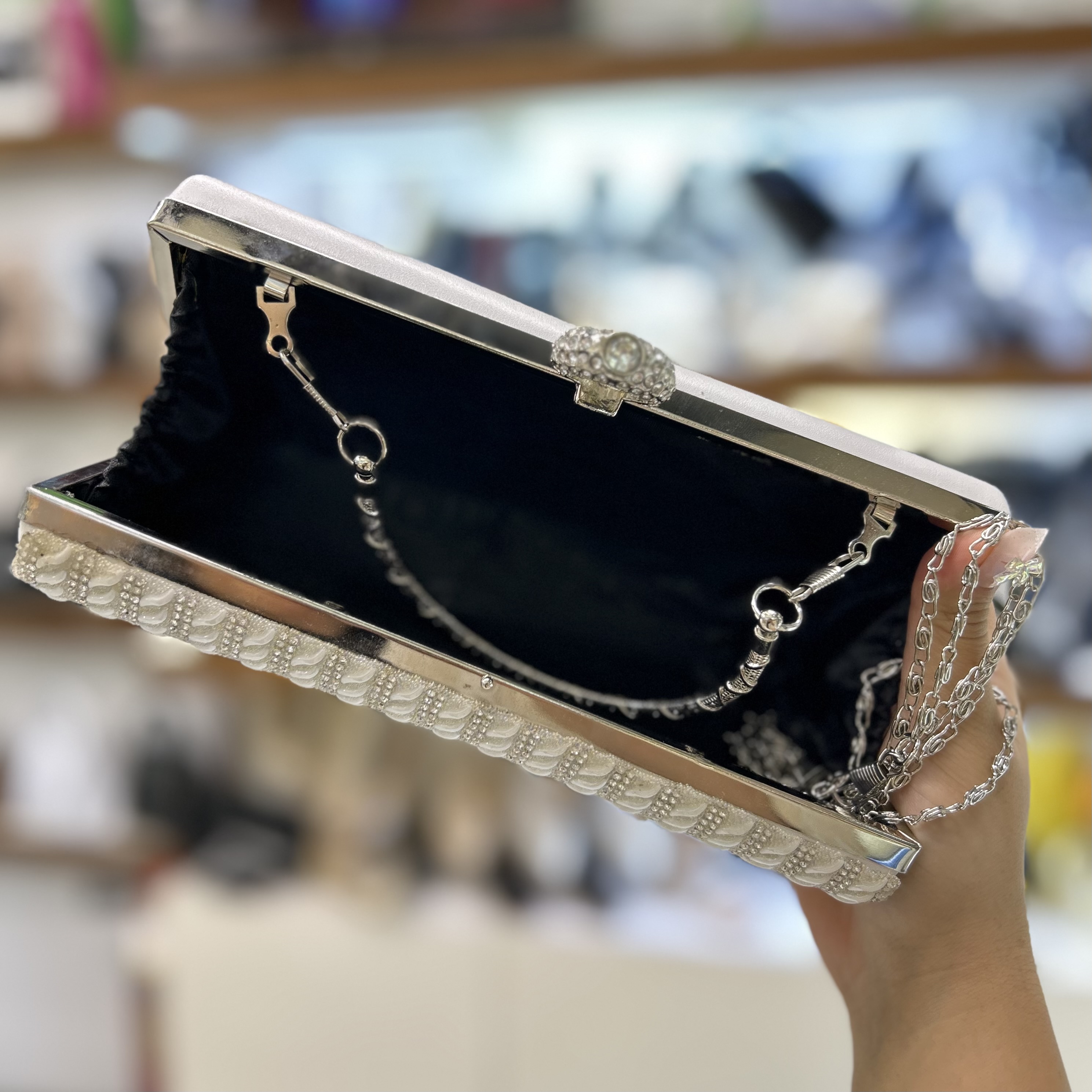 کیف فول نگین مناسب برای مجالس و عروس خانوم های عزیز | این کیف به ۳ حالت استفاده میشه :دسته دار ، بند بلند دارد و انگشتی استفاده میشود