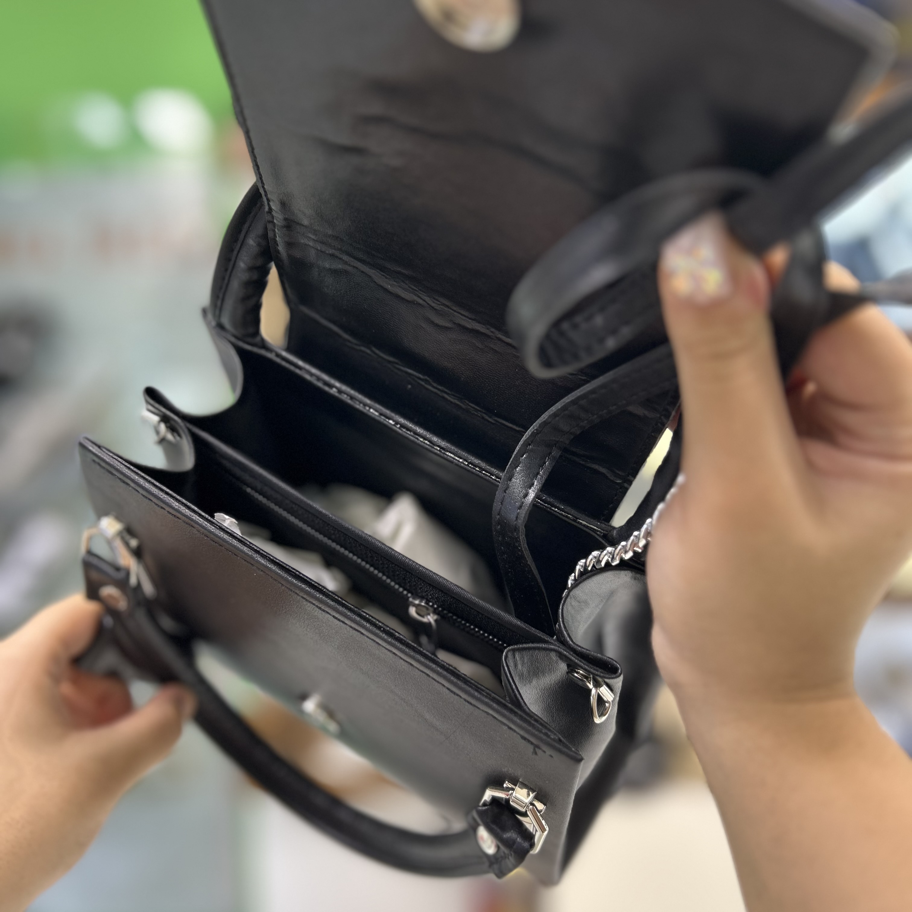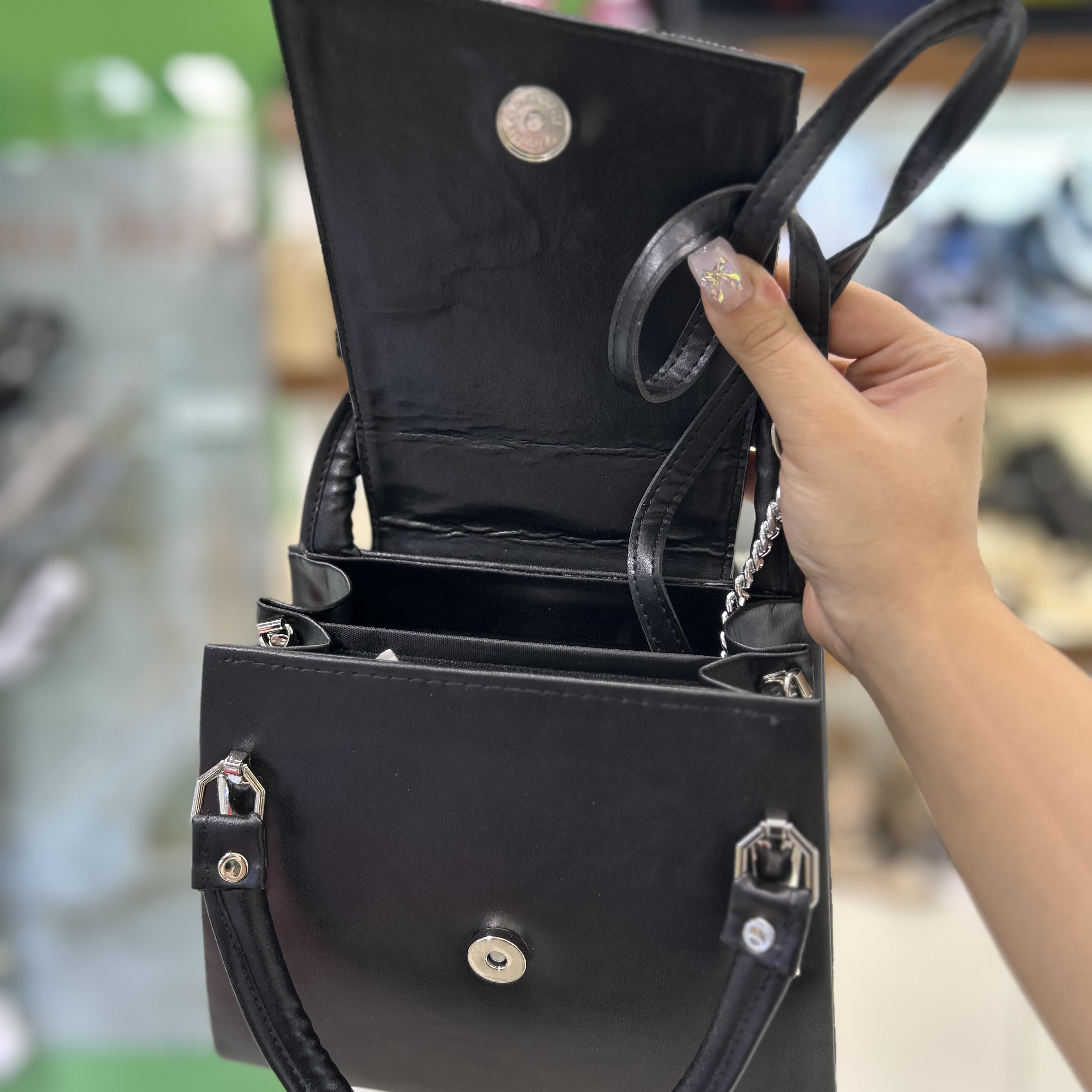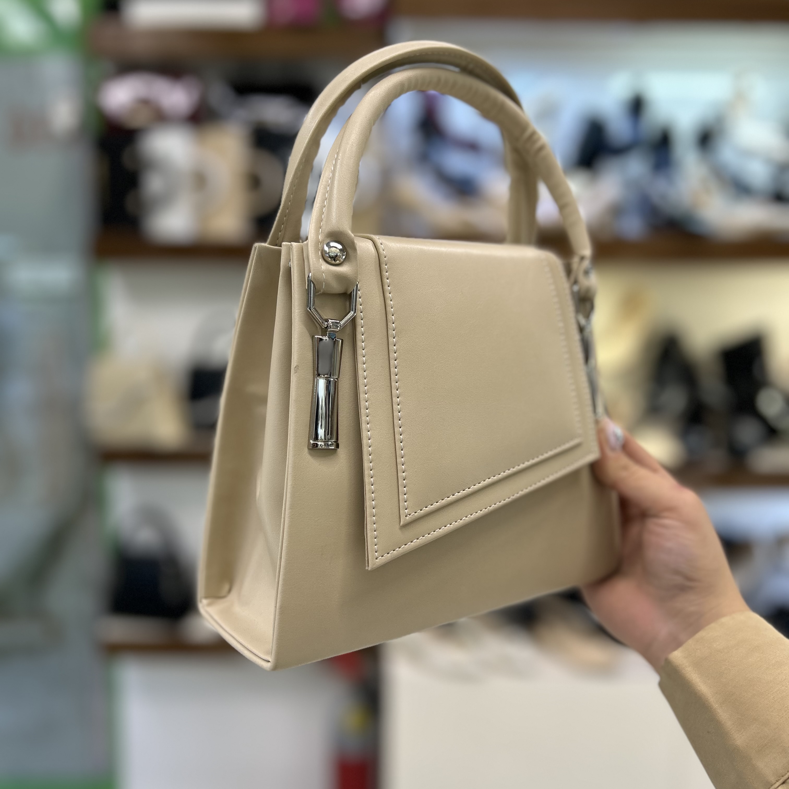 کیف بزرگ زنانه مجلسی دسته دار ، یراق های رنگ ثابت ، دارای بند بلند تلفیق چرم و زنجیر رنگ ثابت