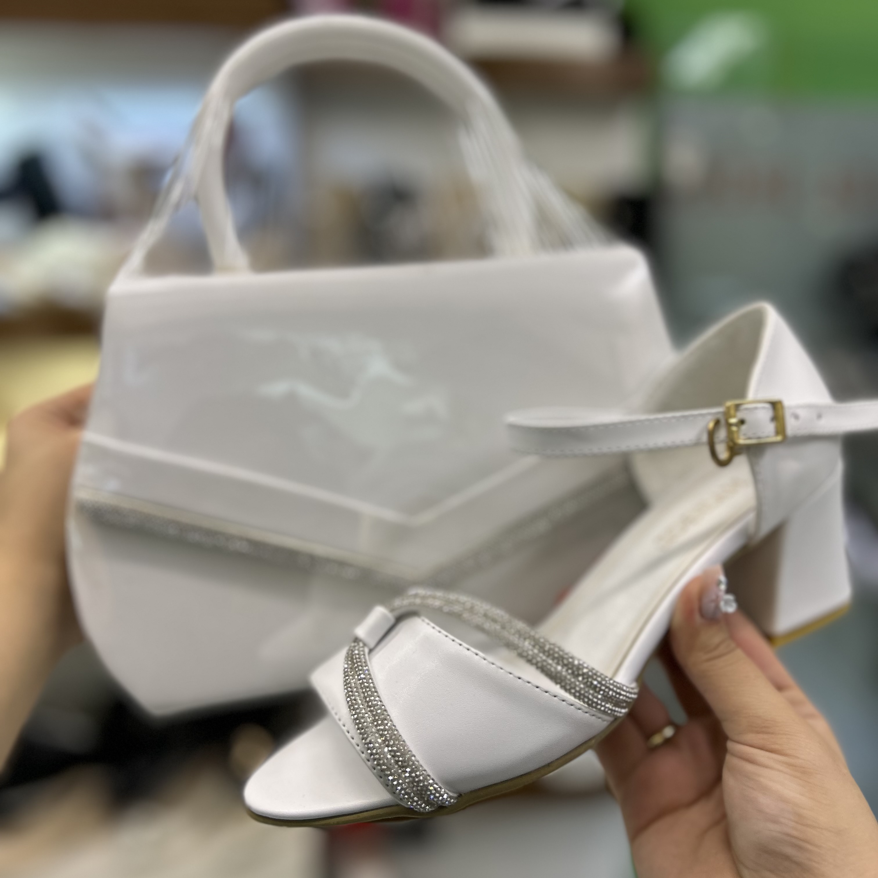 ست کیف و کفش عروس جلو باز زنانه سفید کد ۲۹۲/۱