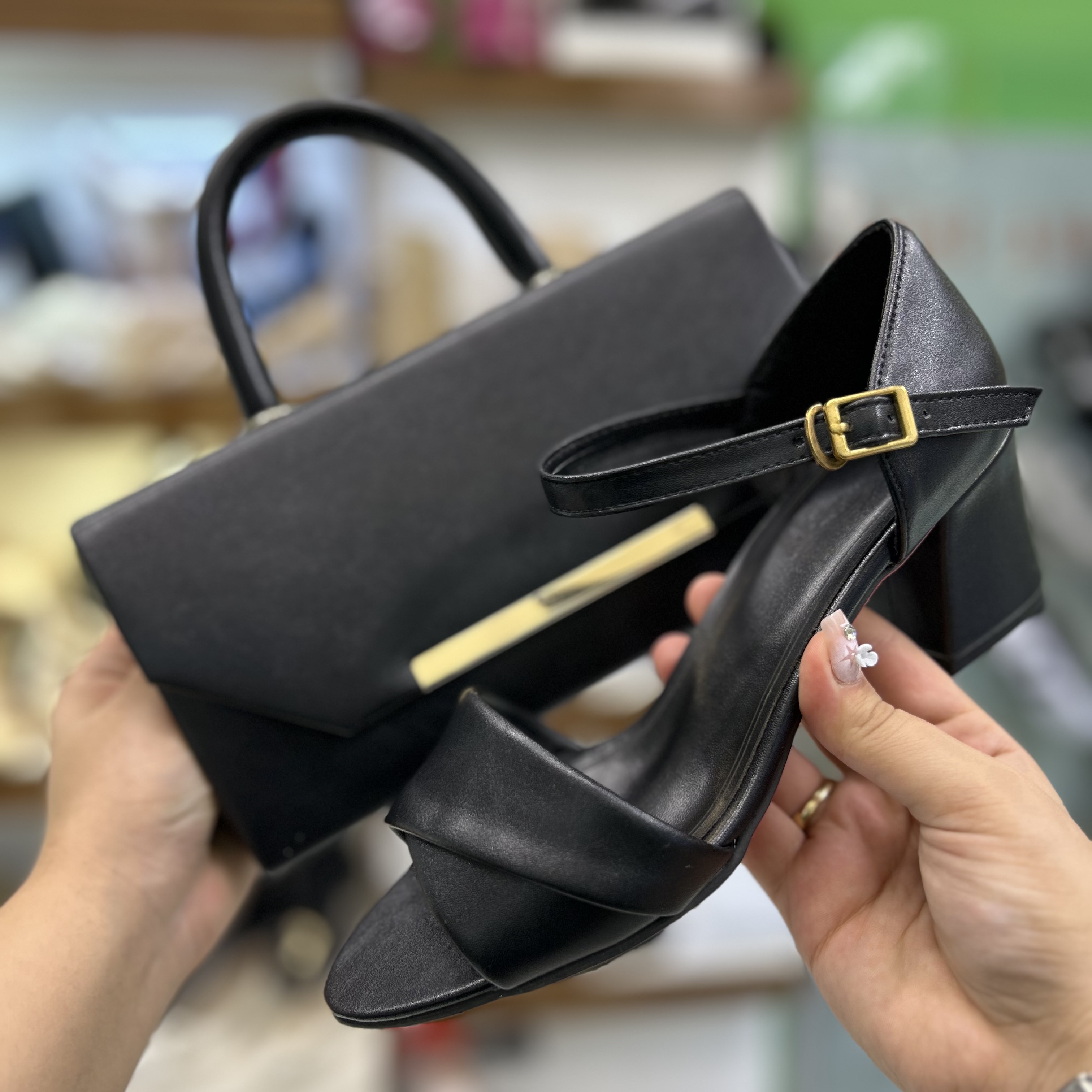 ست کیف و کفش مجلسی جلو باز زنانه مشکی کد ۱۸۹