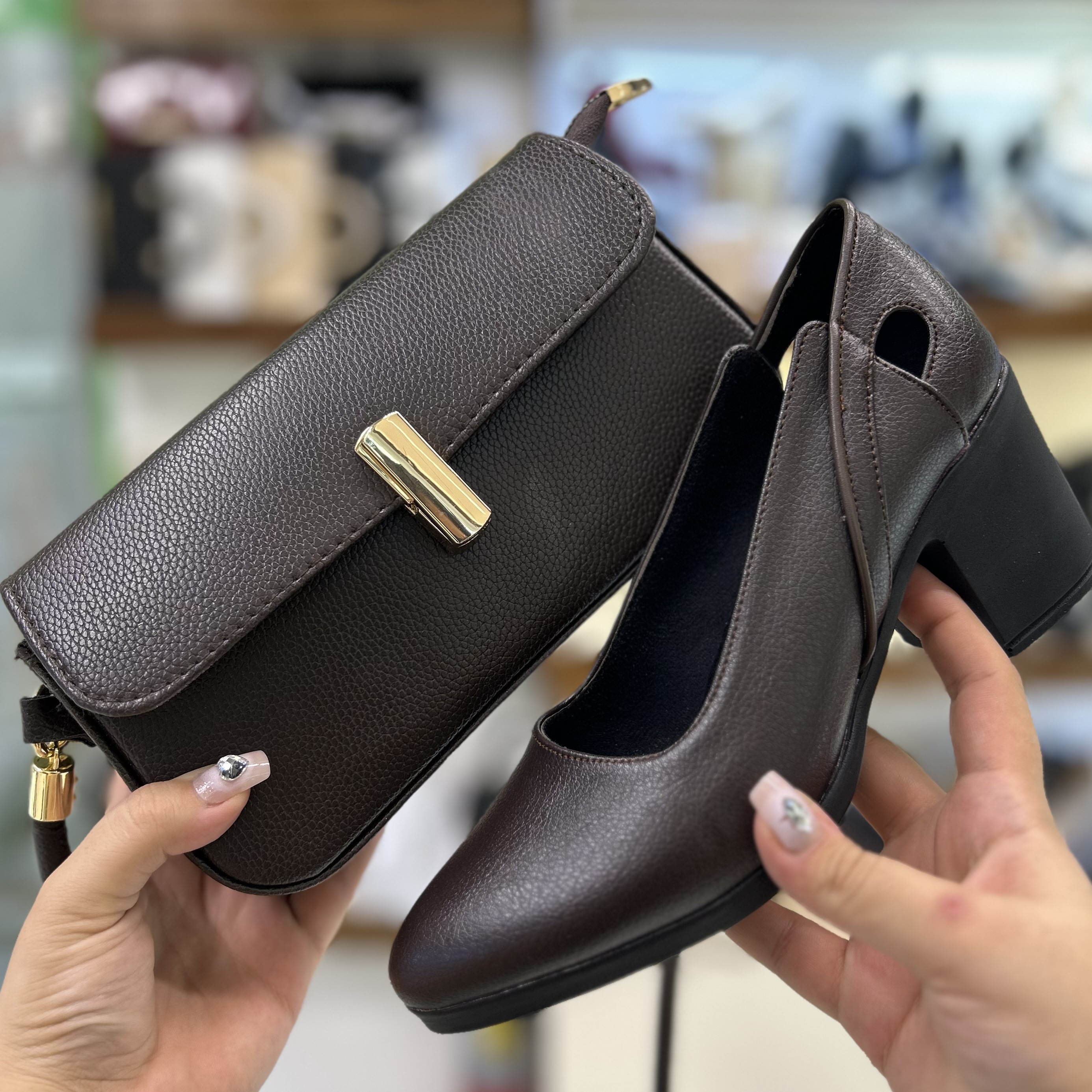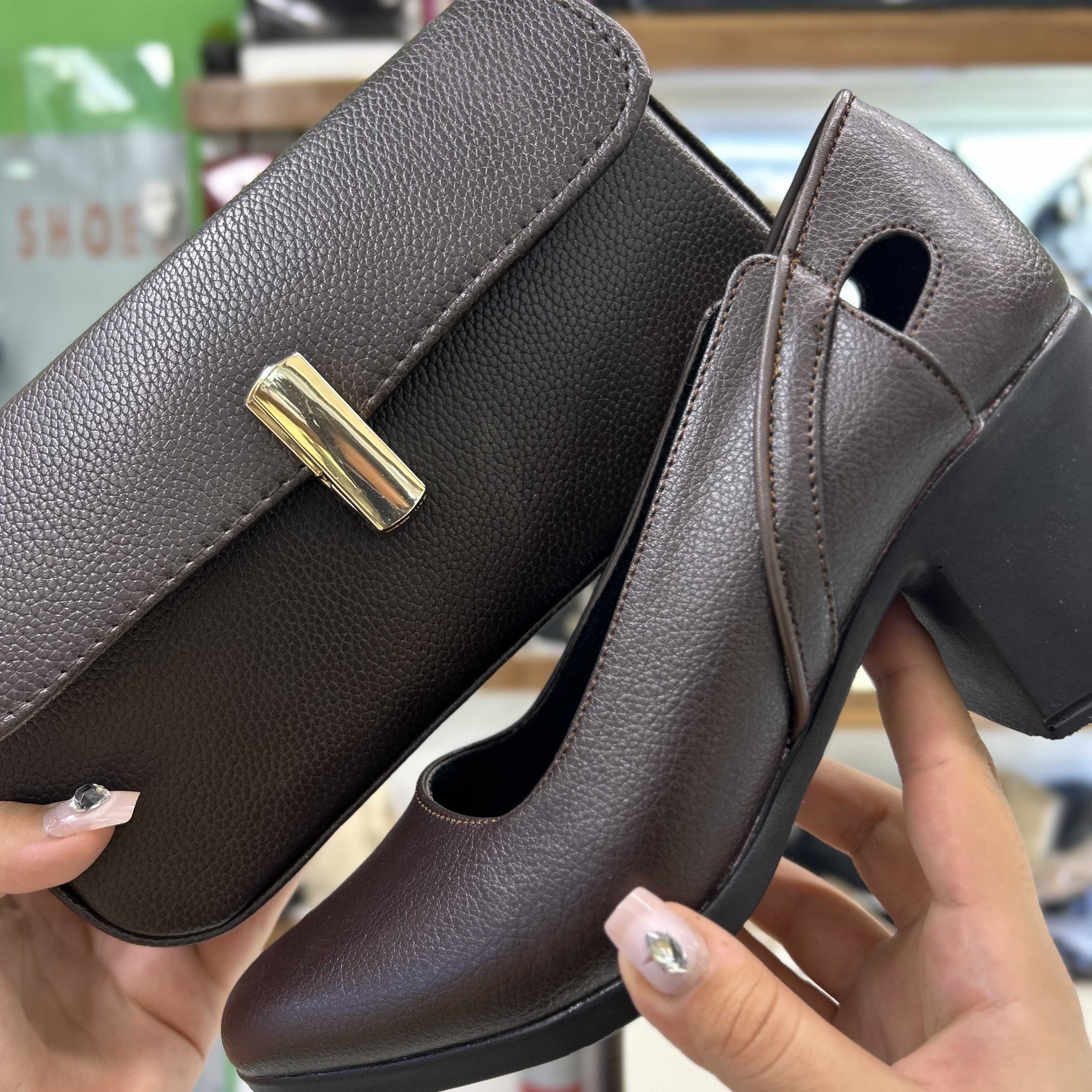 ست کیف و کفش زنانه پاشنه پیو قهوه ای کد ۸/۲