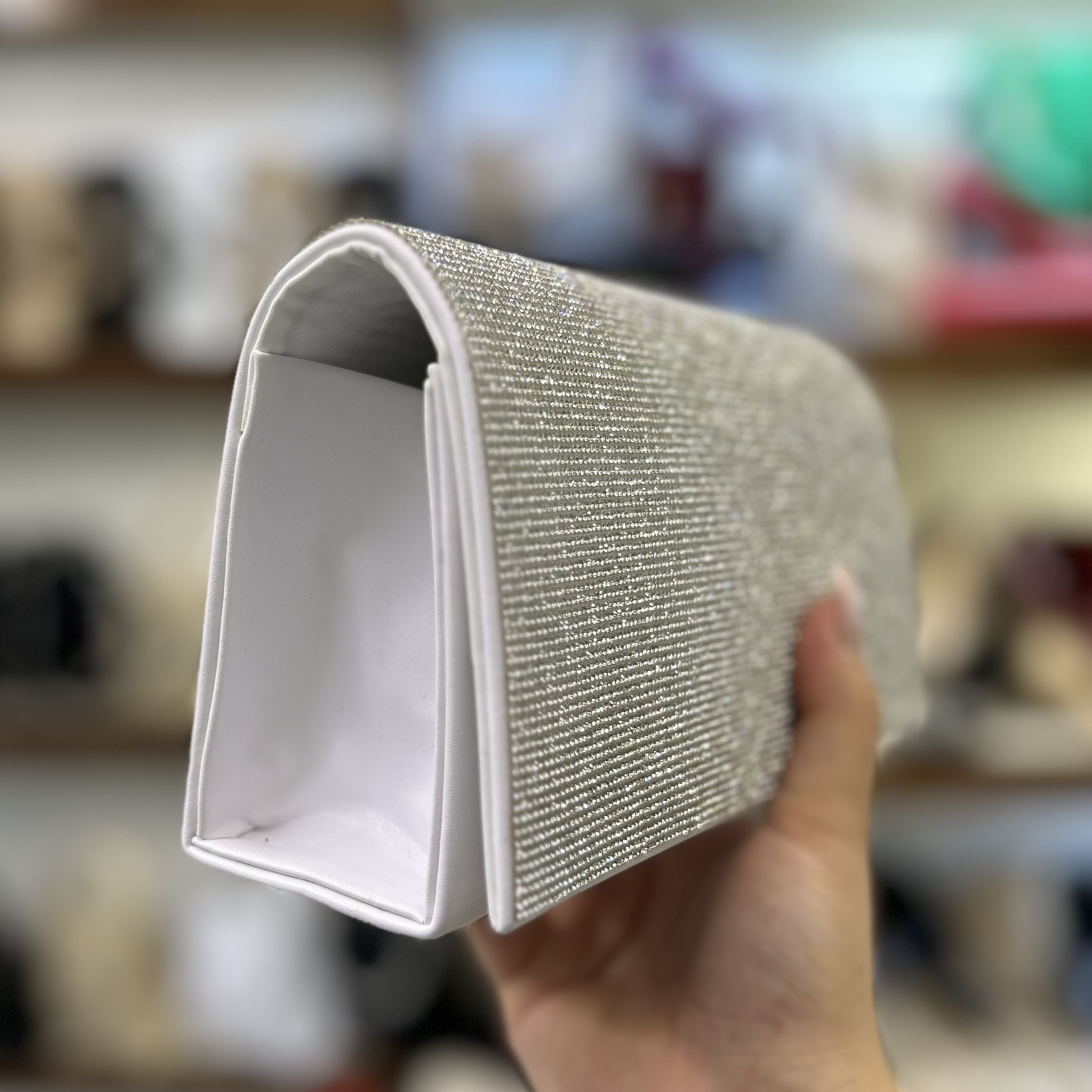 ست کیف و‌ کفش مجلسی طلقی شرشره ای سفید کد ۴۱/۱