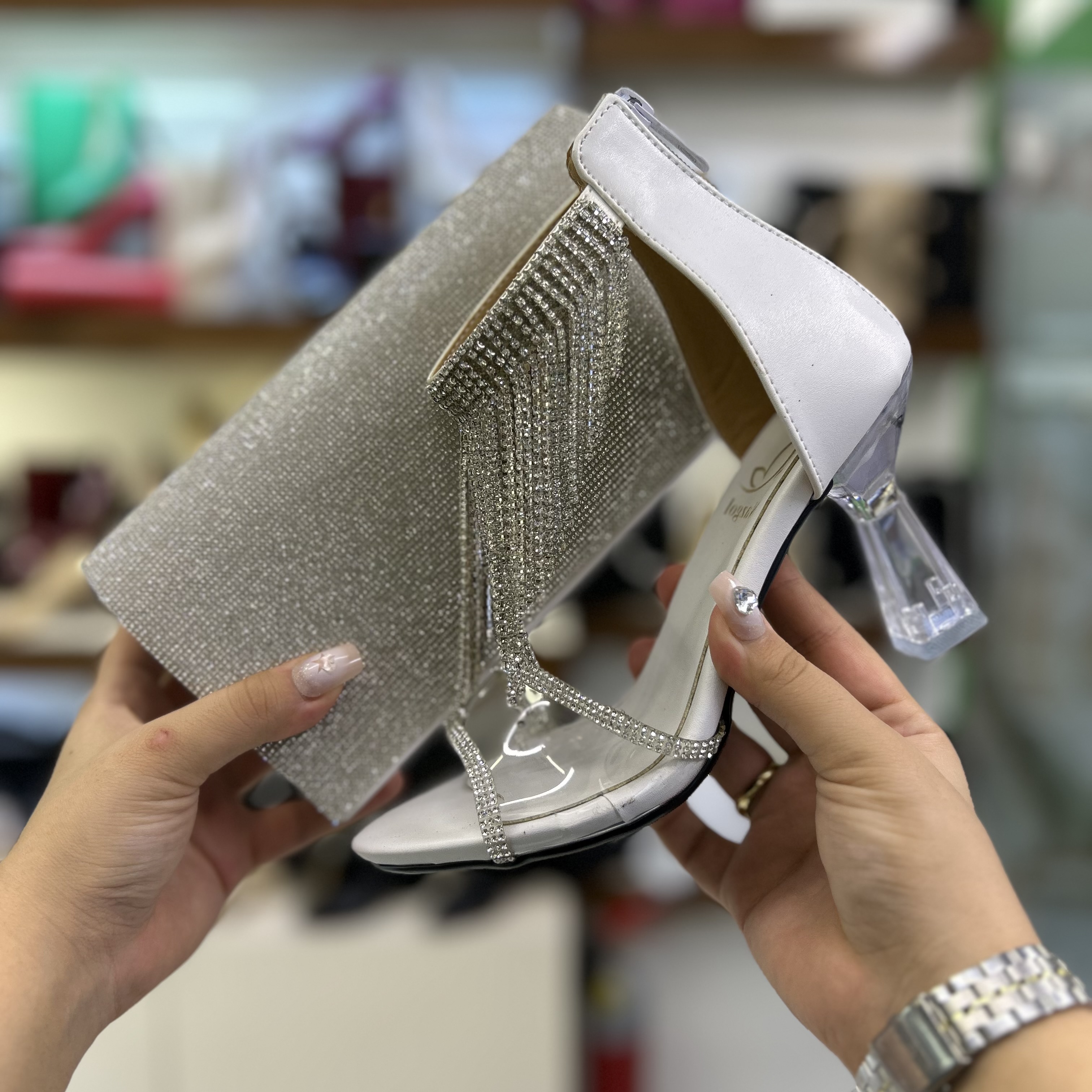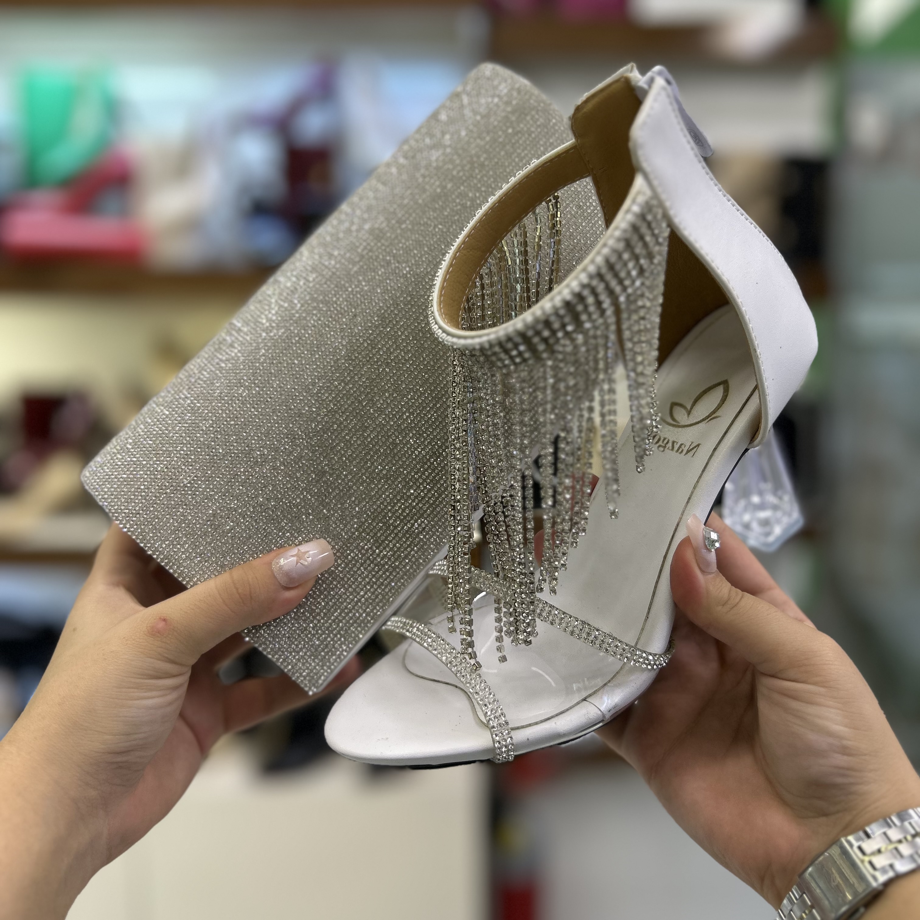 عکس ست کیف و کفش مجلسی زنانه شرشره ای سفید