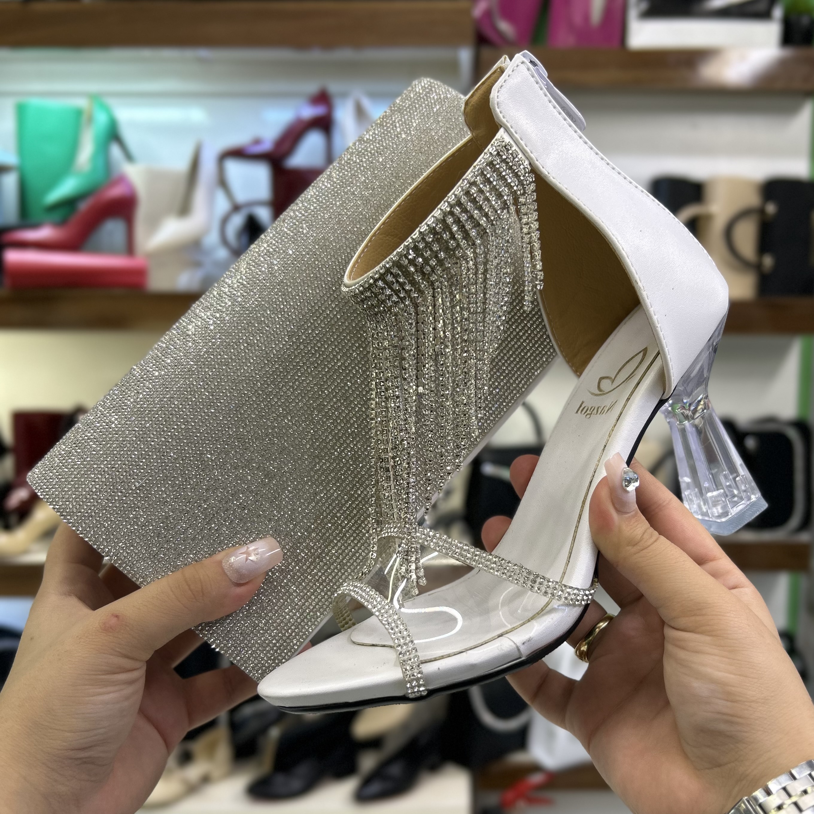 قیمت ست کیف و کفش سفید فول نگین مجلسی زنانه