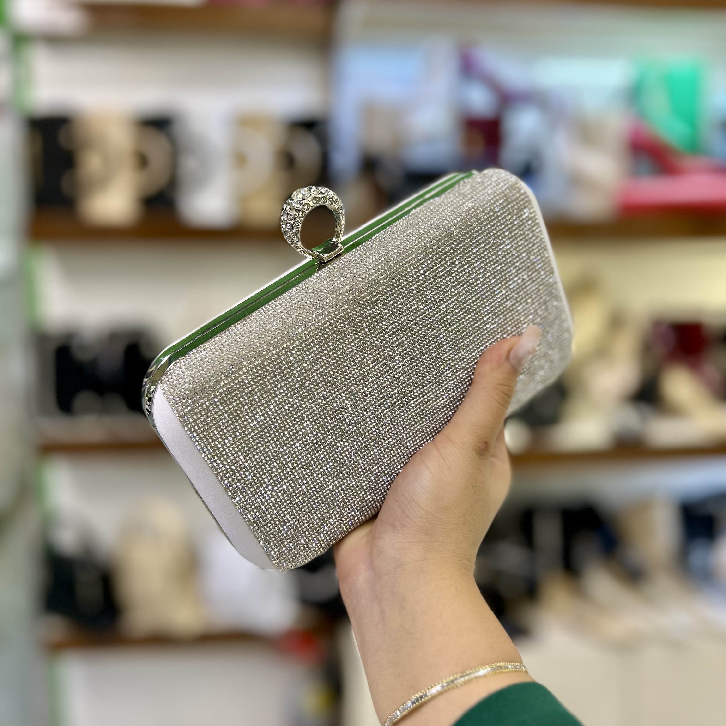 خرید کیف شب دهنه دار فول نگین زنانه انگشتی
