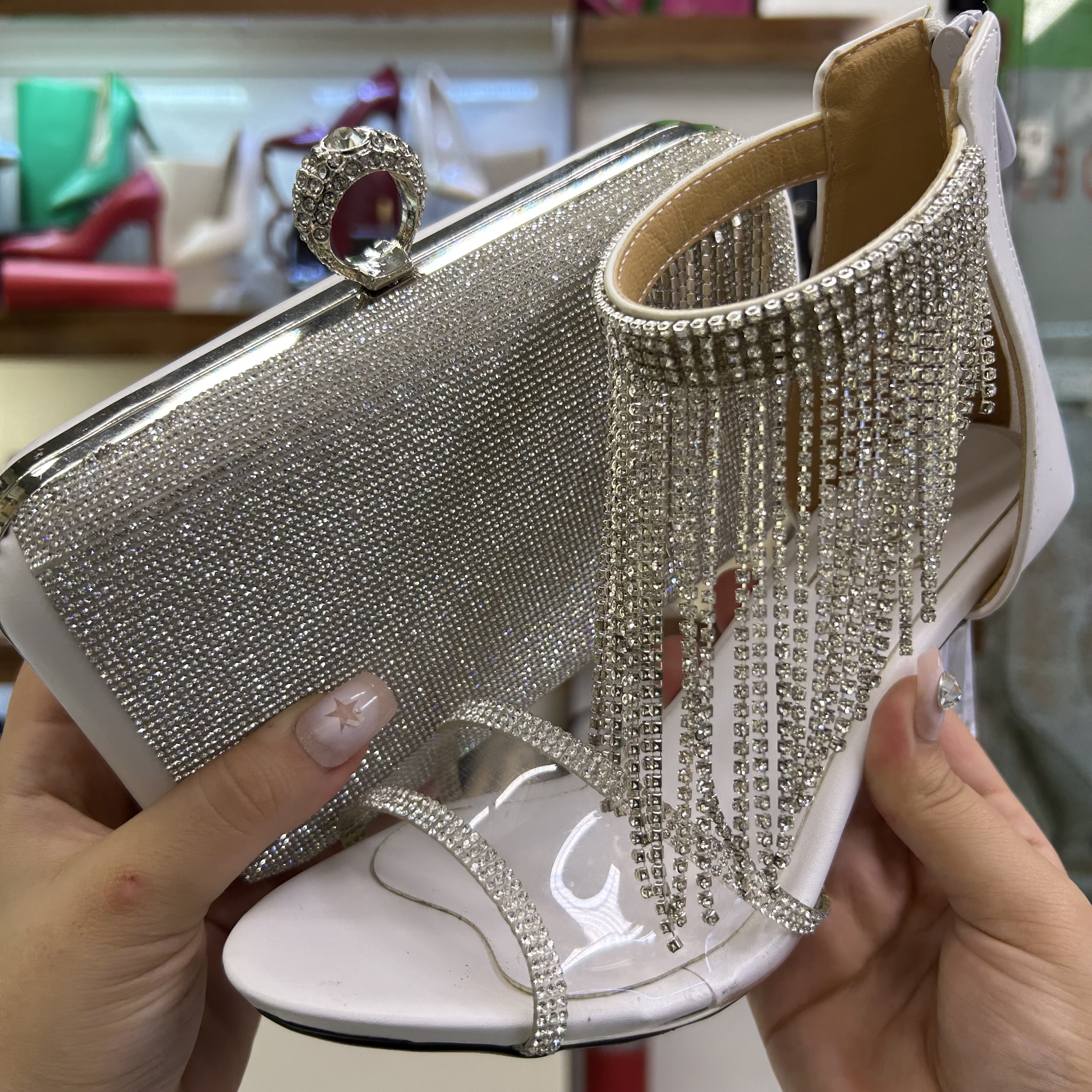 5️⃣ ویژگیهای برجسته (Highlights / Key Features) 🎀 طراحی طلق و نگین شیک و زنانه 👠 مناسب استایل مجلسی و رسمی 💎 طلقی خاص و ترند 👜 کیف جادار با طراحی کاربردی ✅ کفش راحت با قالب استاندارد ✨ جلوه لوکس و چشمگیر در استایل