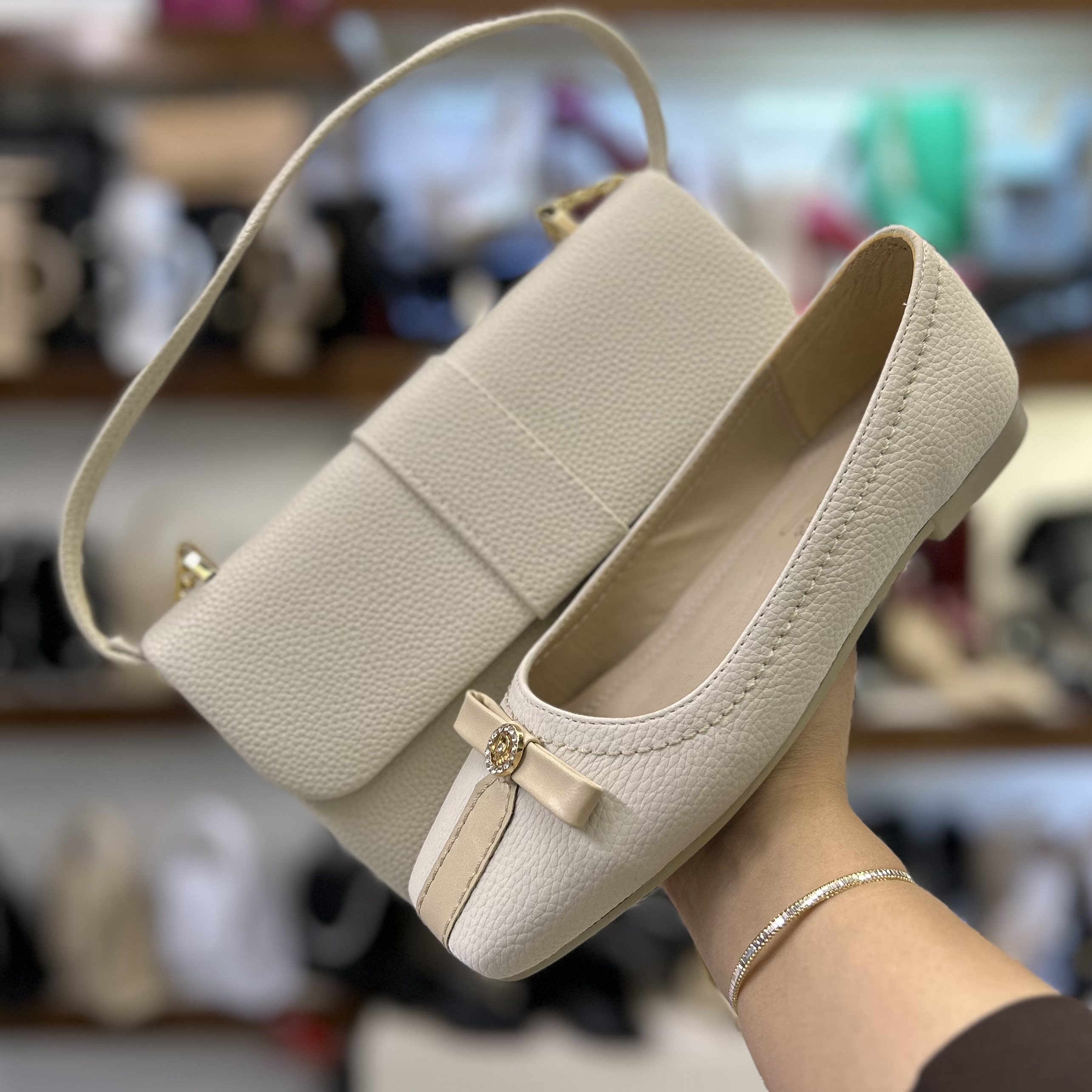 ست کیف و‌ کفش کالج زنانه پاپیونی دیور کرم کد ۱۷/۲