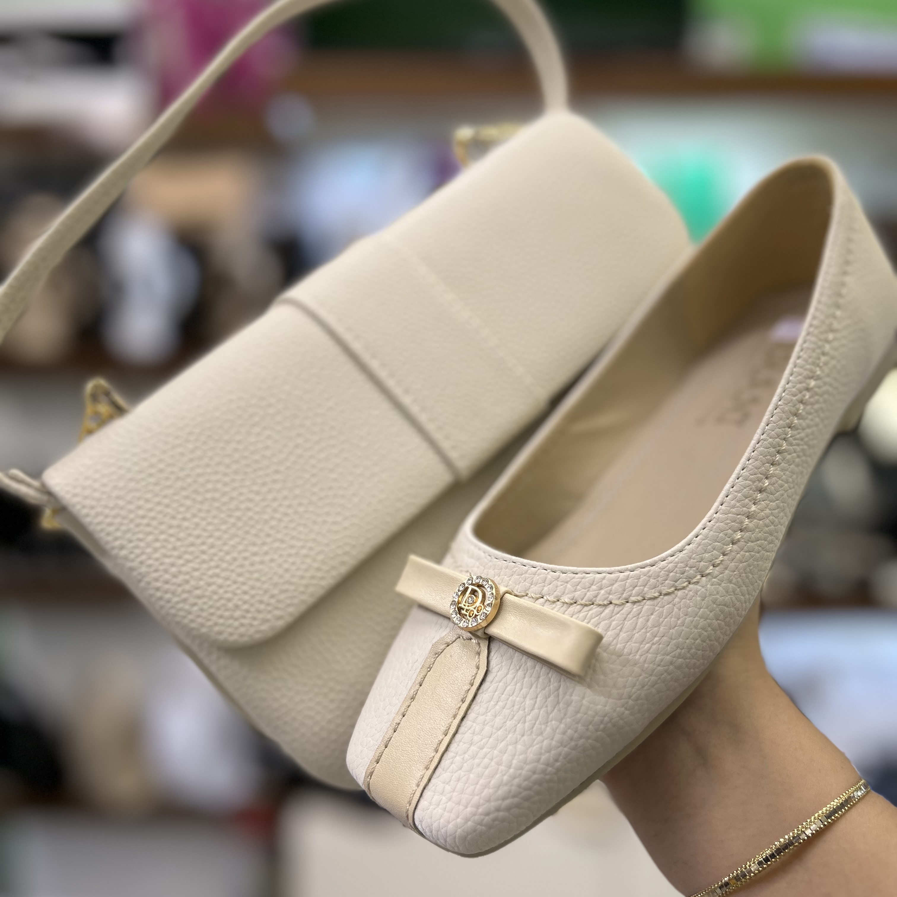 قیمت ست کیف و‌ کفش کالج زنانه پاپیونی دیور کرم