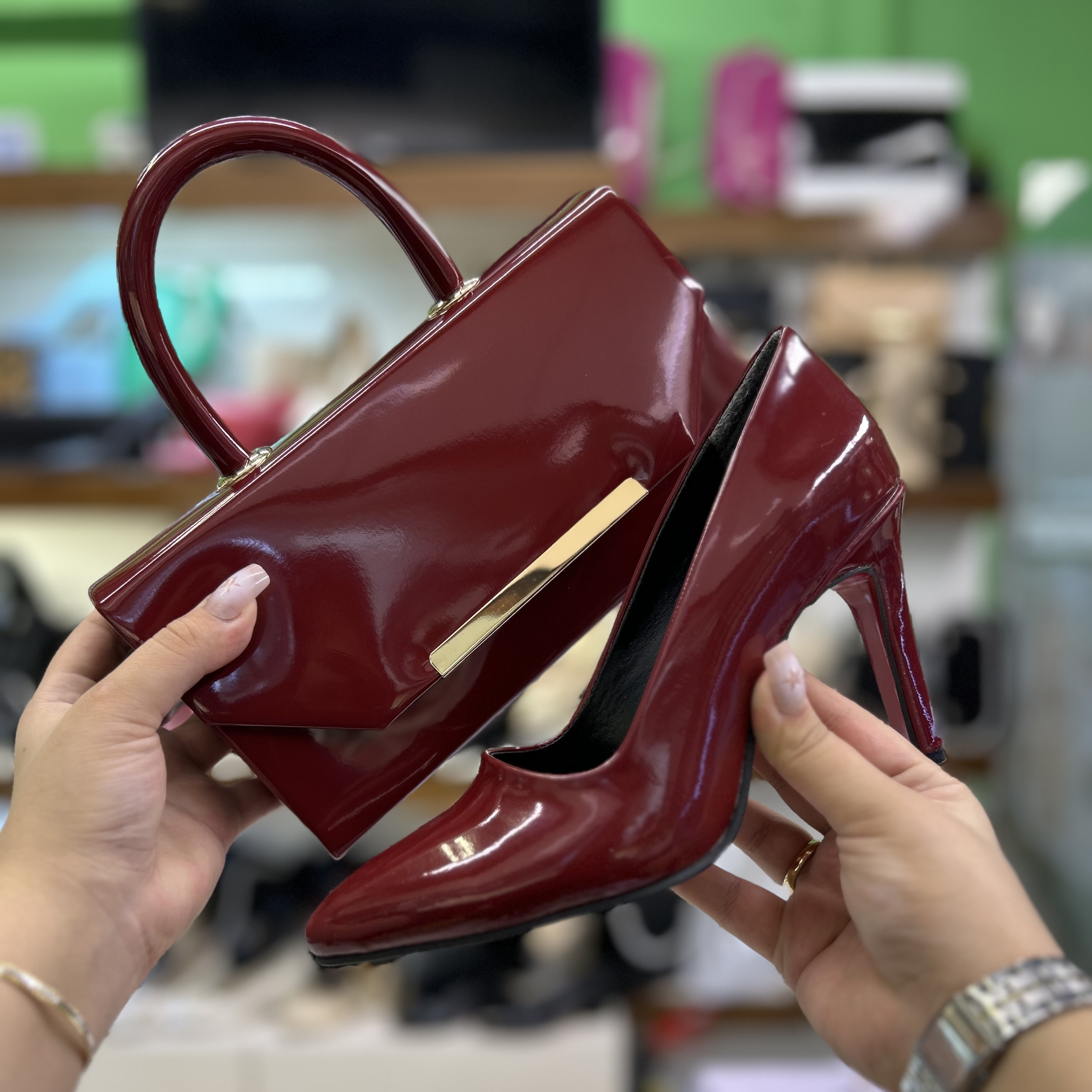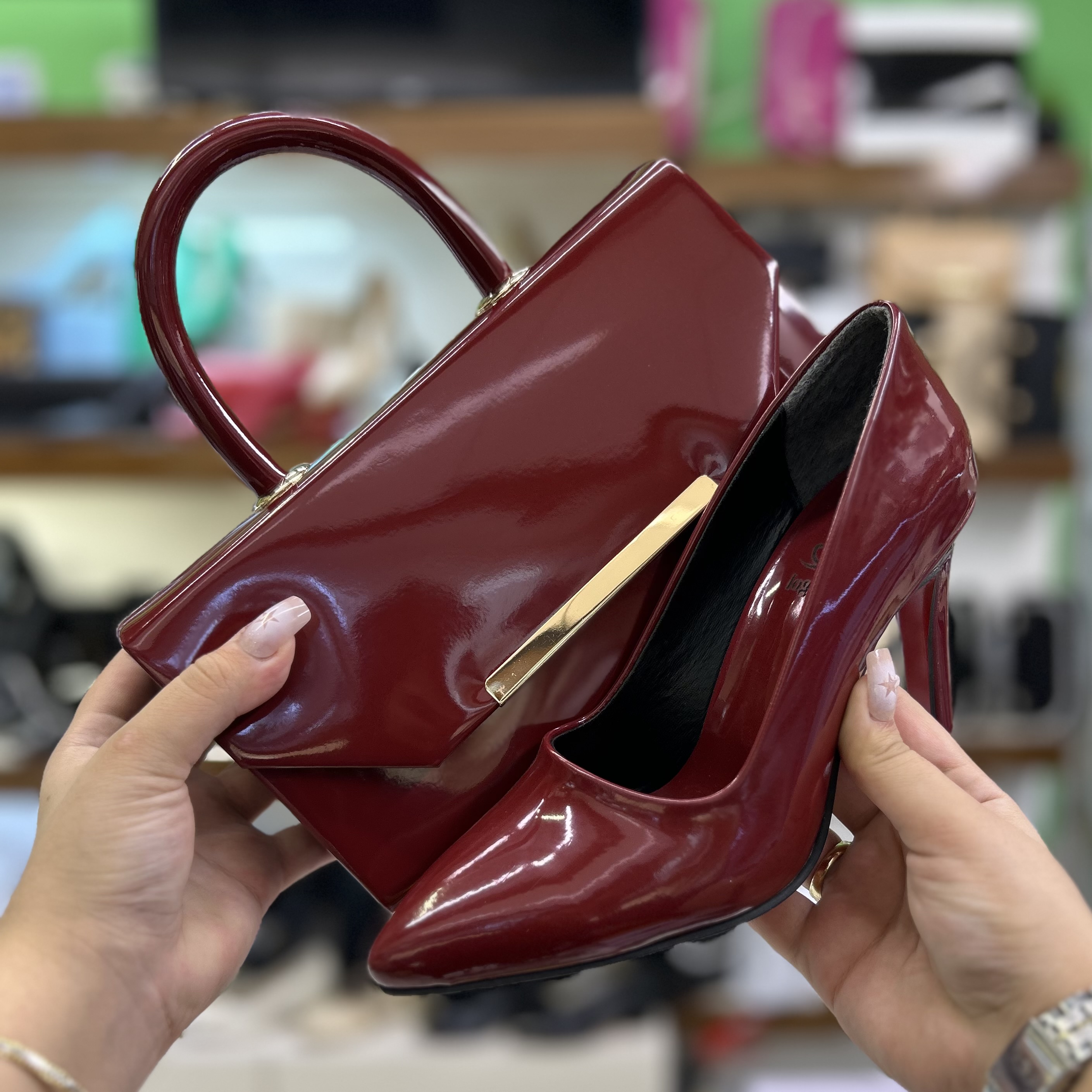 خرید ست کیف و کفش مجلسی زنانه زرشکی قالب ترک
