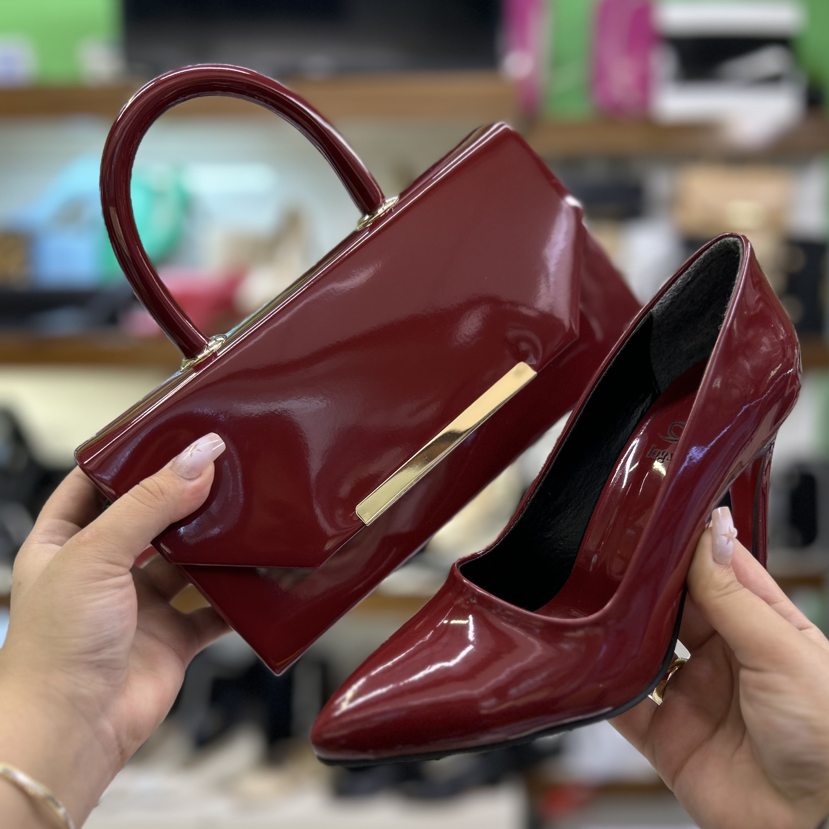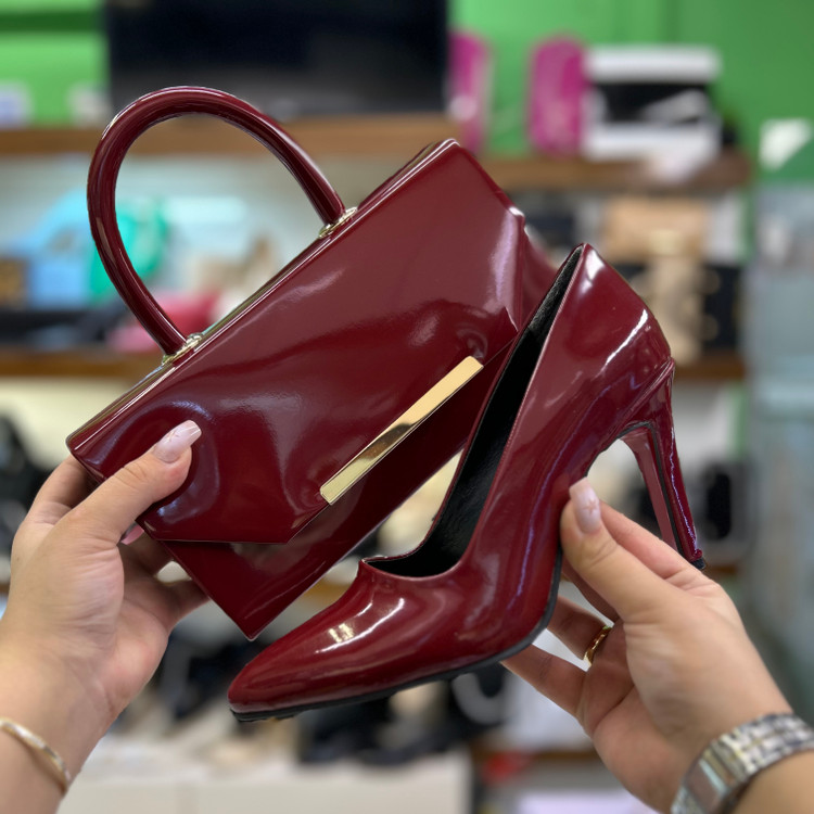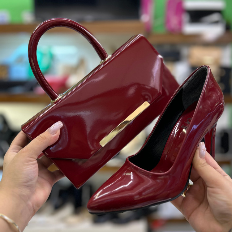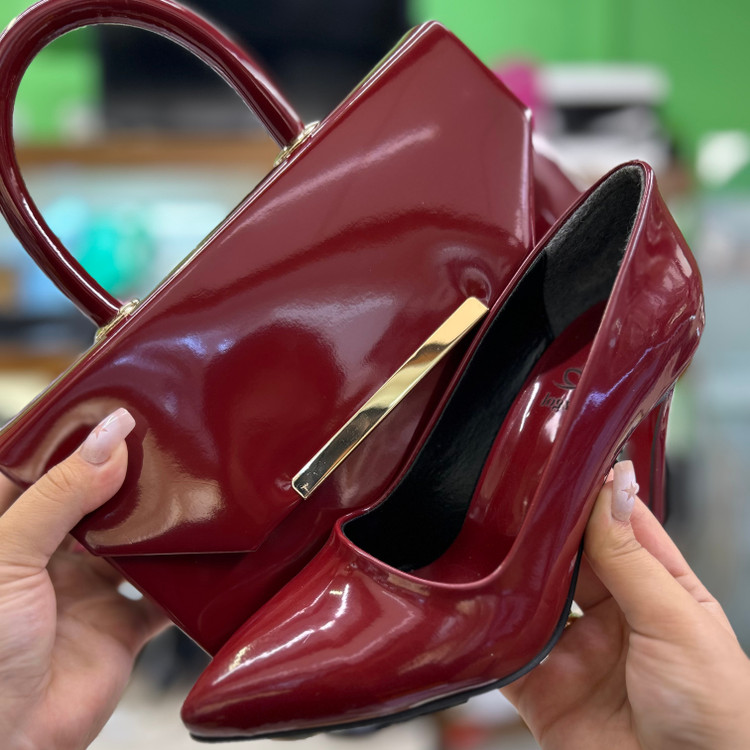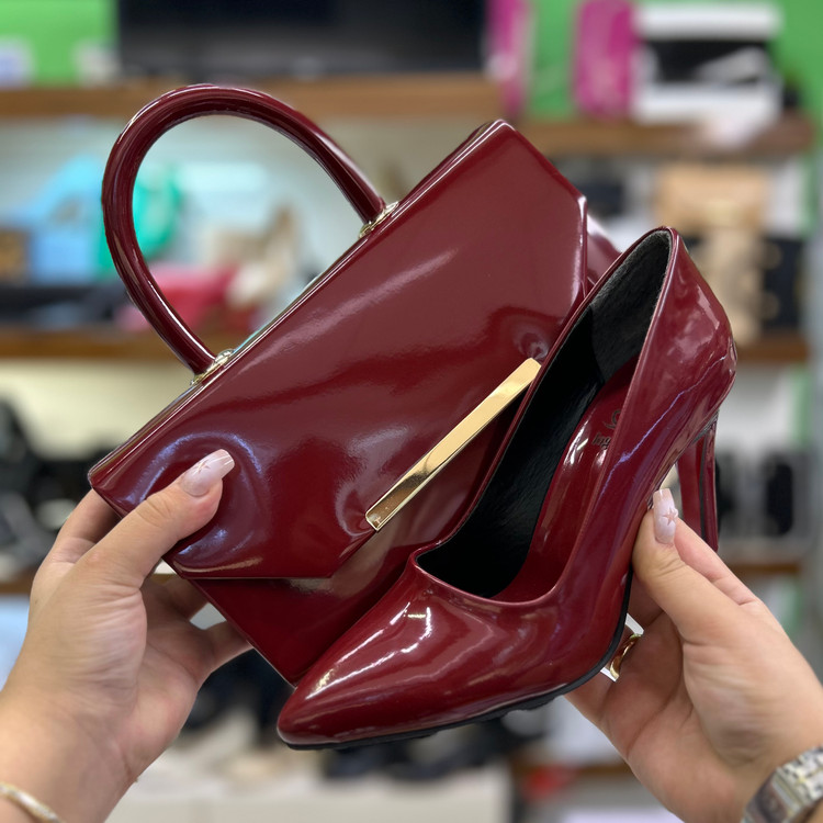 ست کیف و کفش مجلسی زنانه زرشکی قالب ترک کد ۴۸/۳