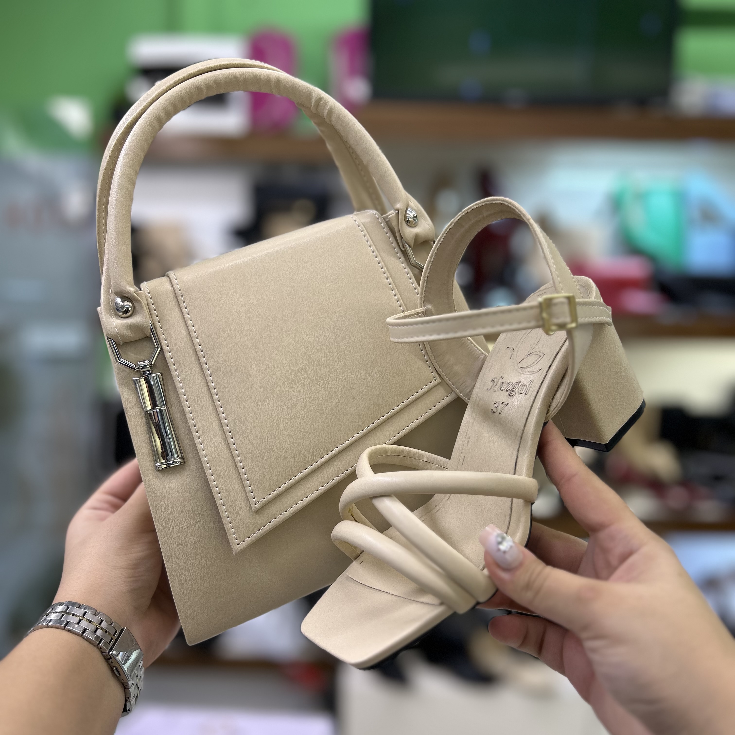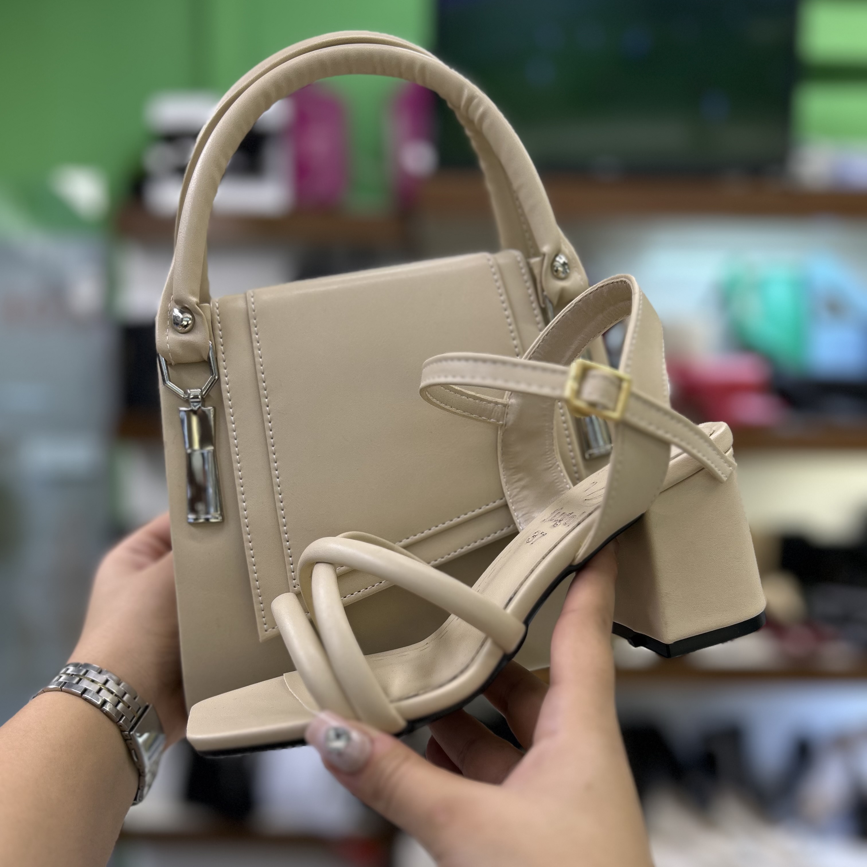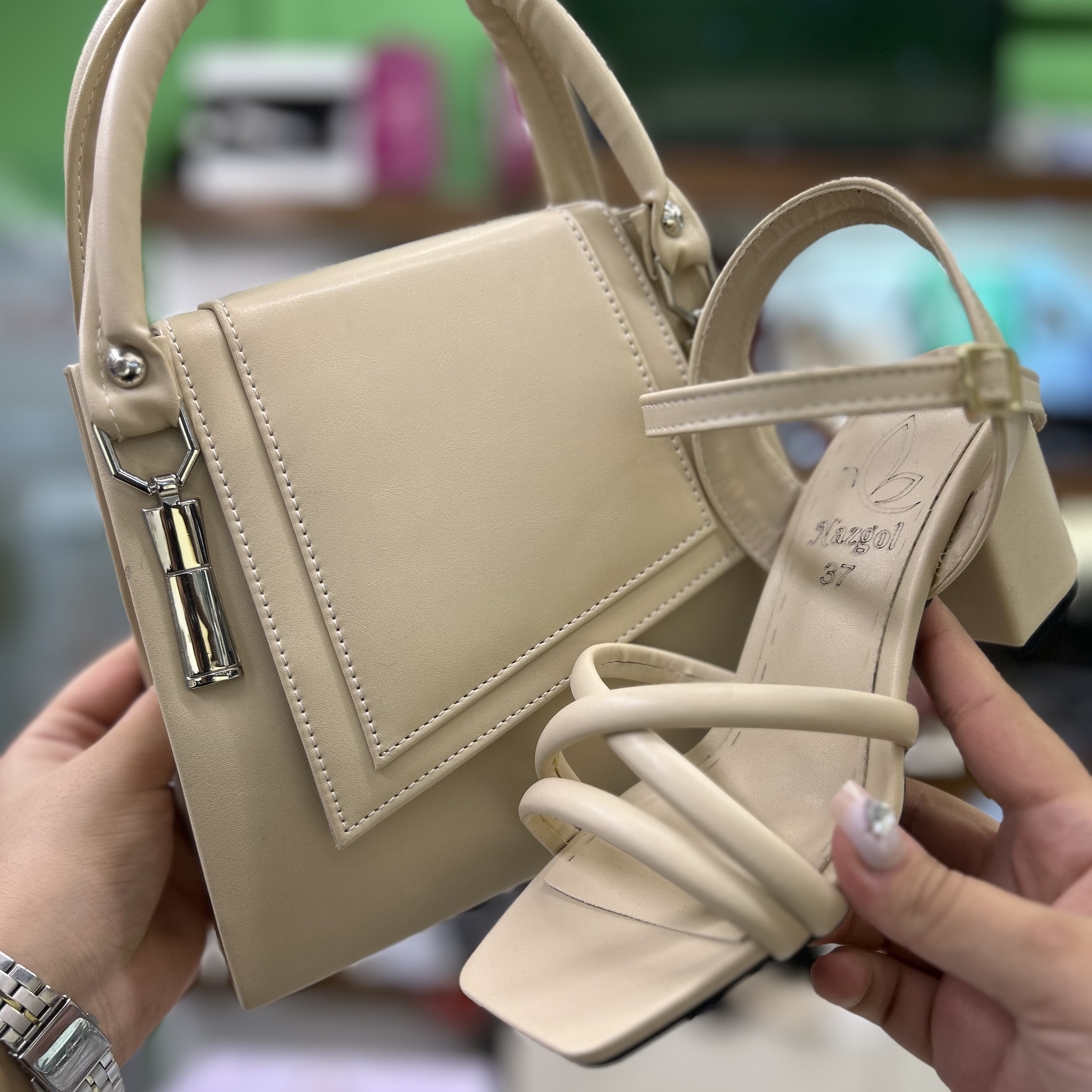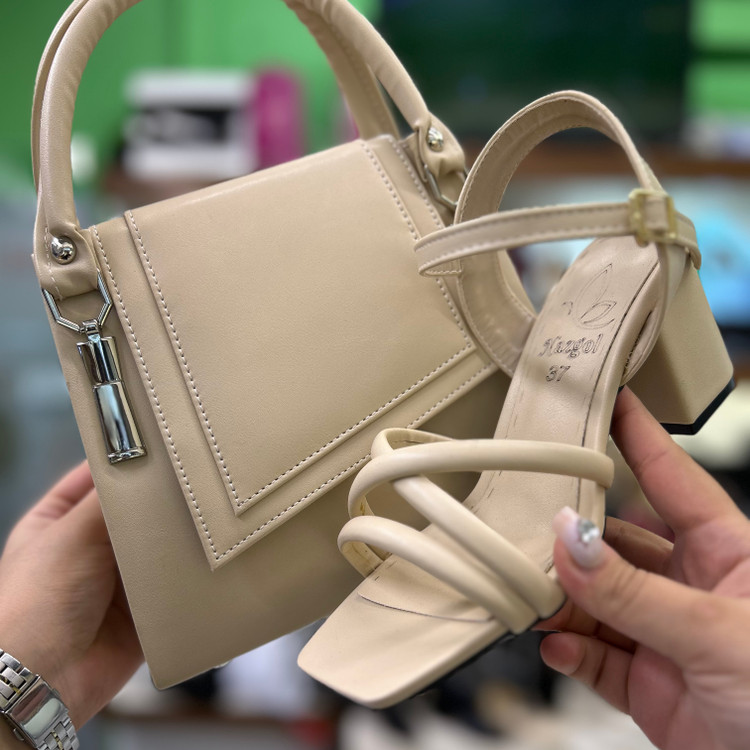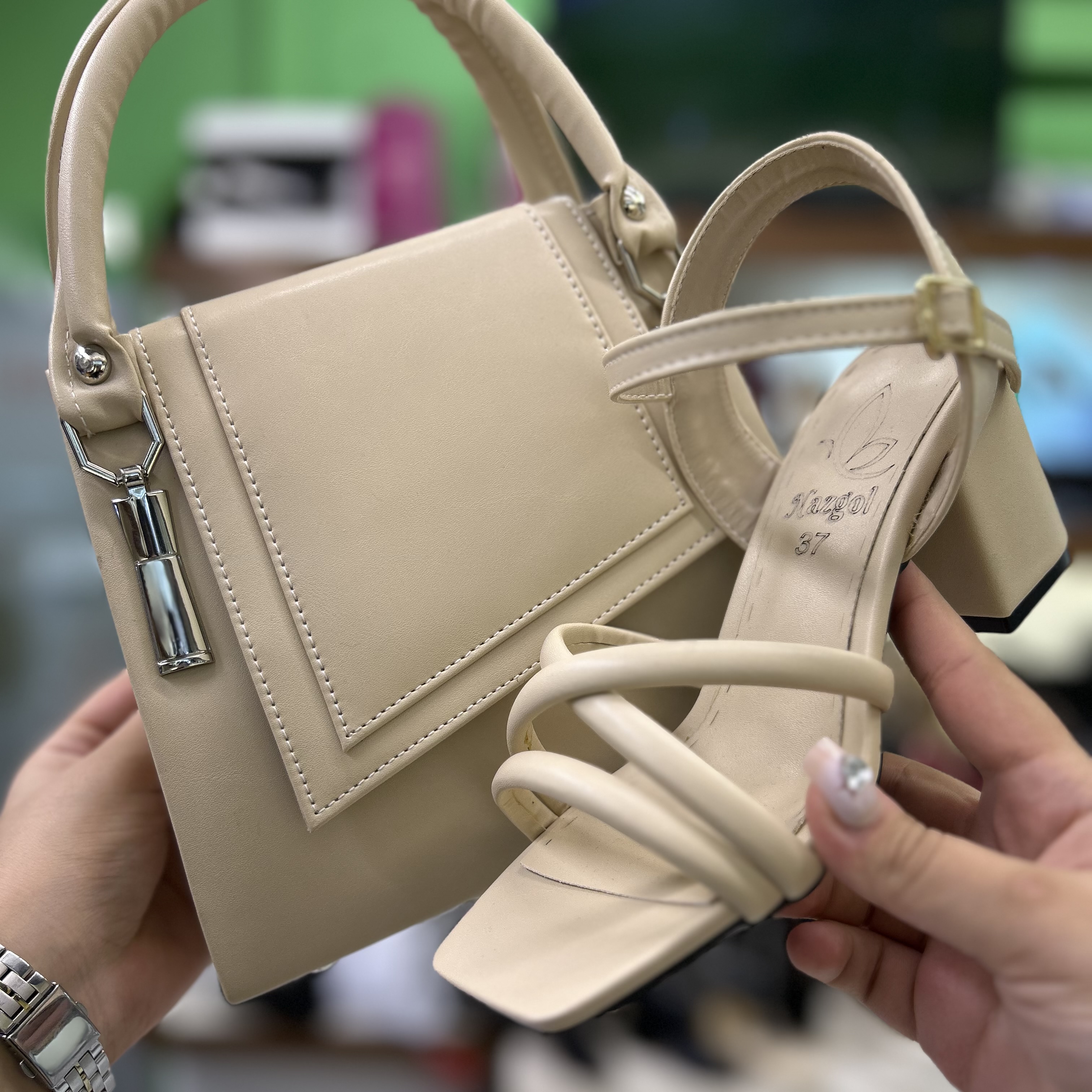 ست کیف و کفش صندل جلو باز زنانه کرم کد ۳۰