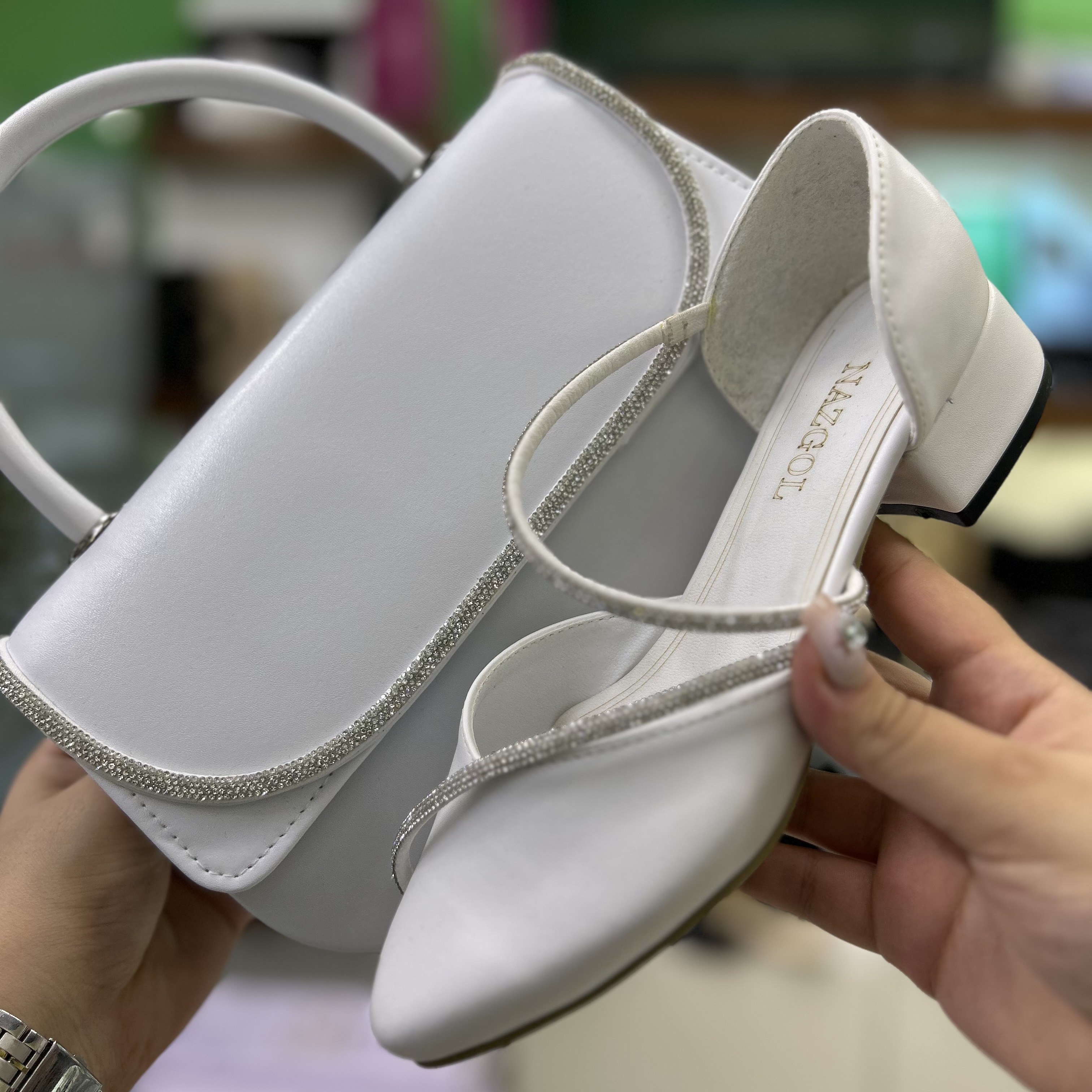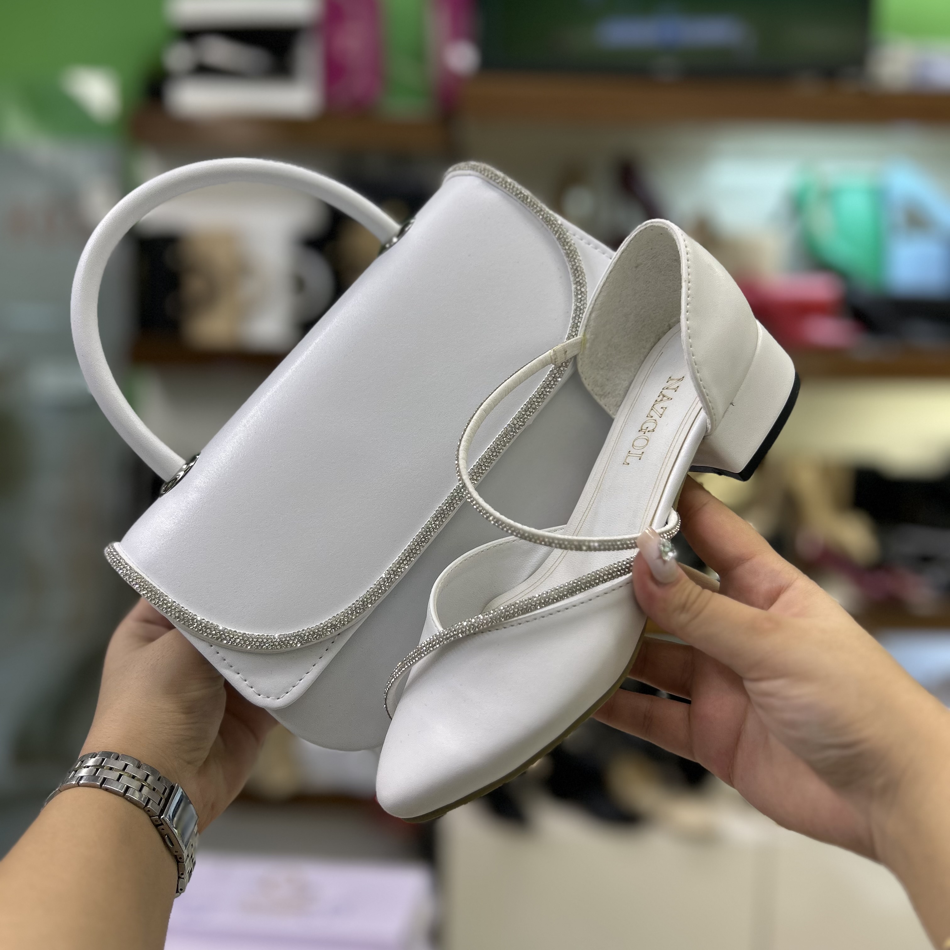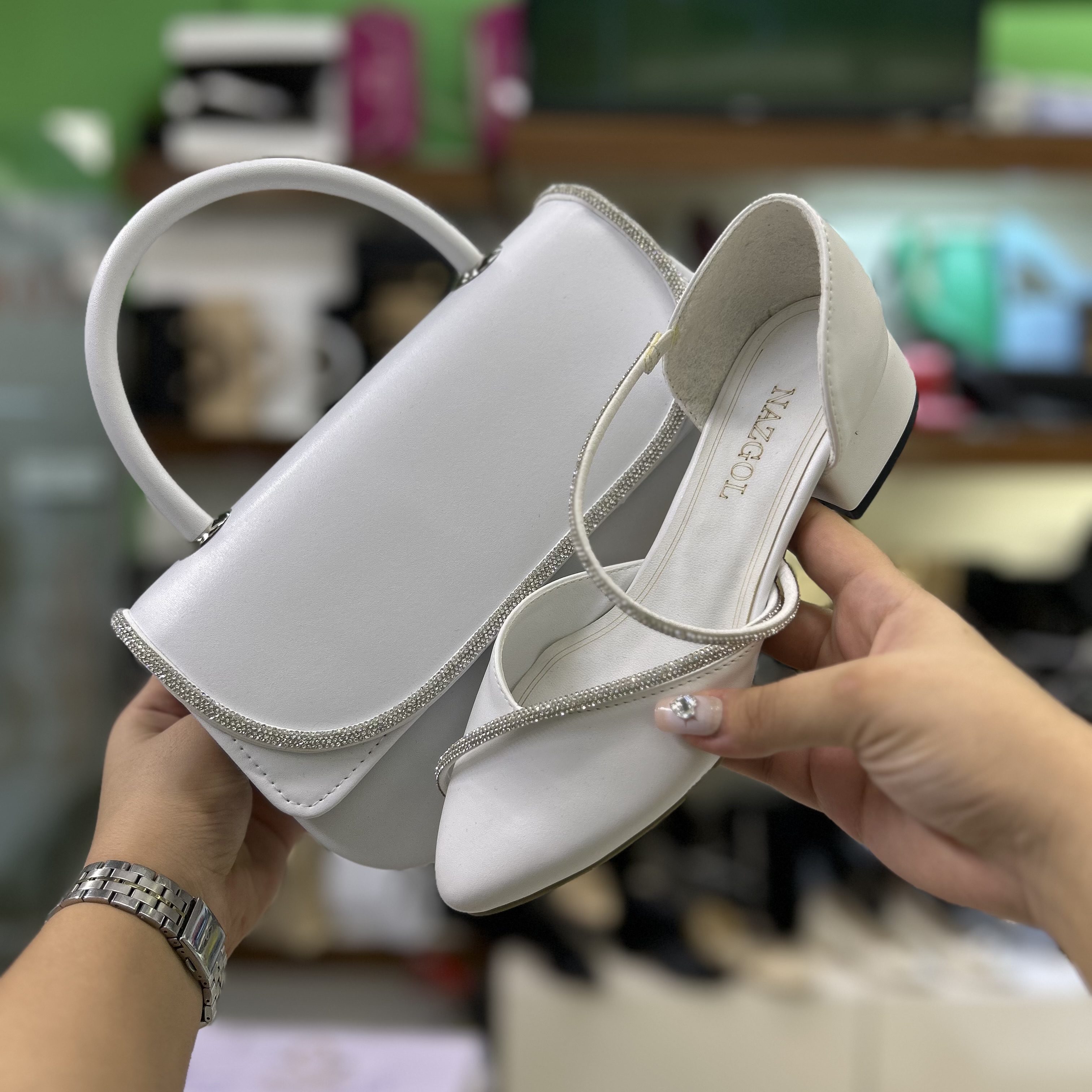 عکس ست کیف و کفش مجلسی سفید عروس پاشنه ۳ سانت