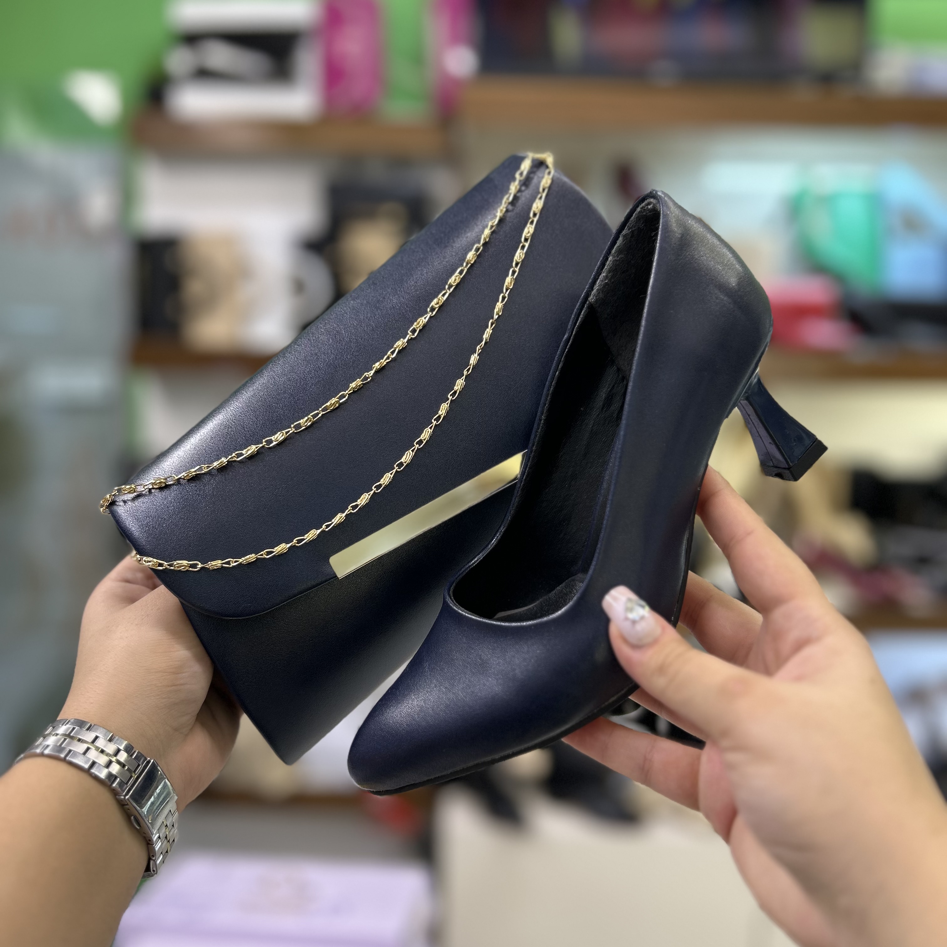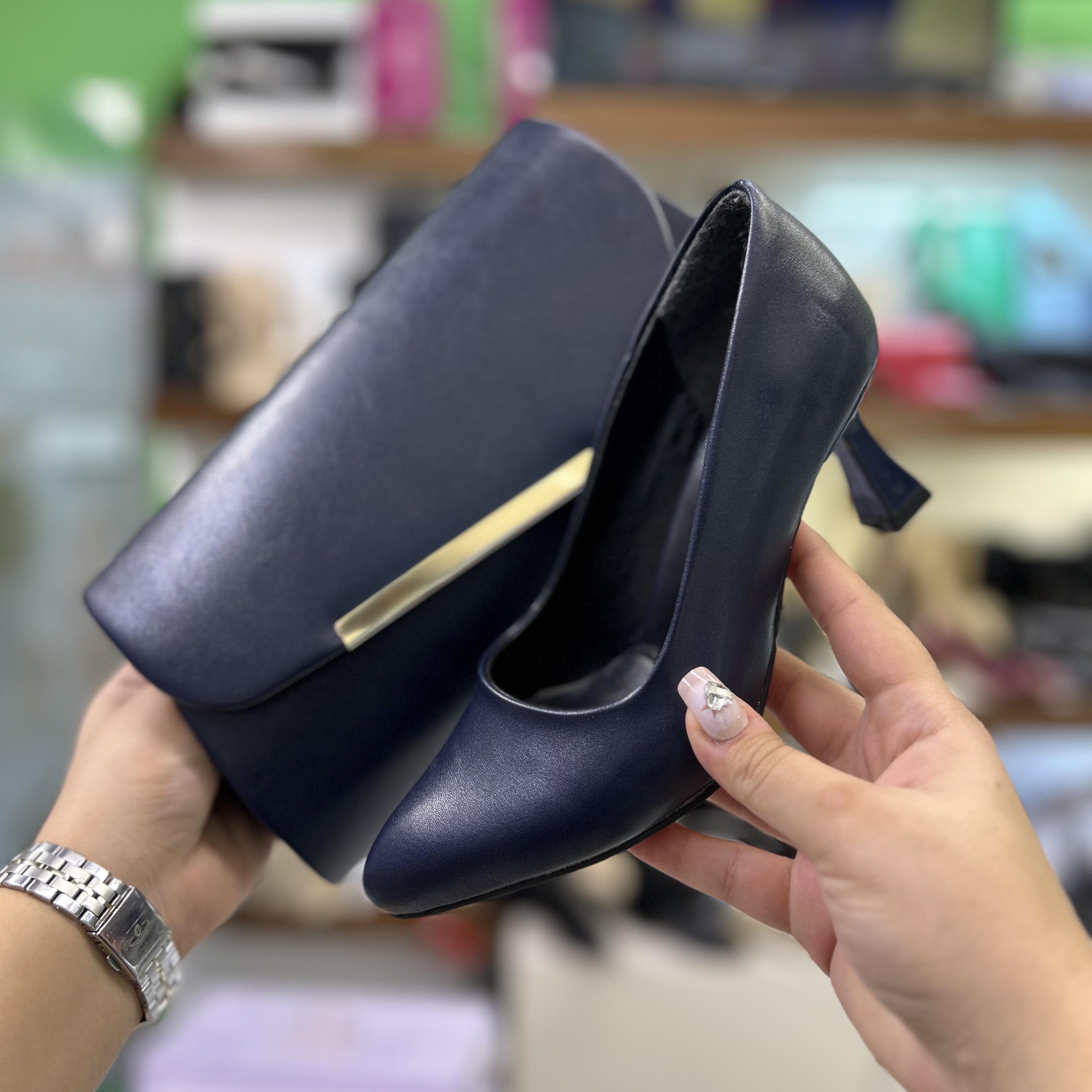 ست کیف و کفش مجلسی سورمه ای بسیار شیک