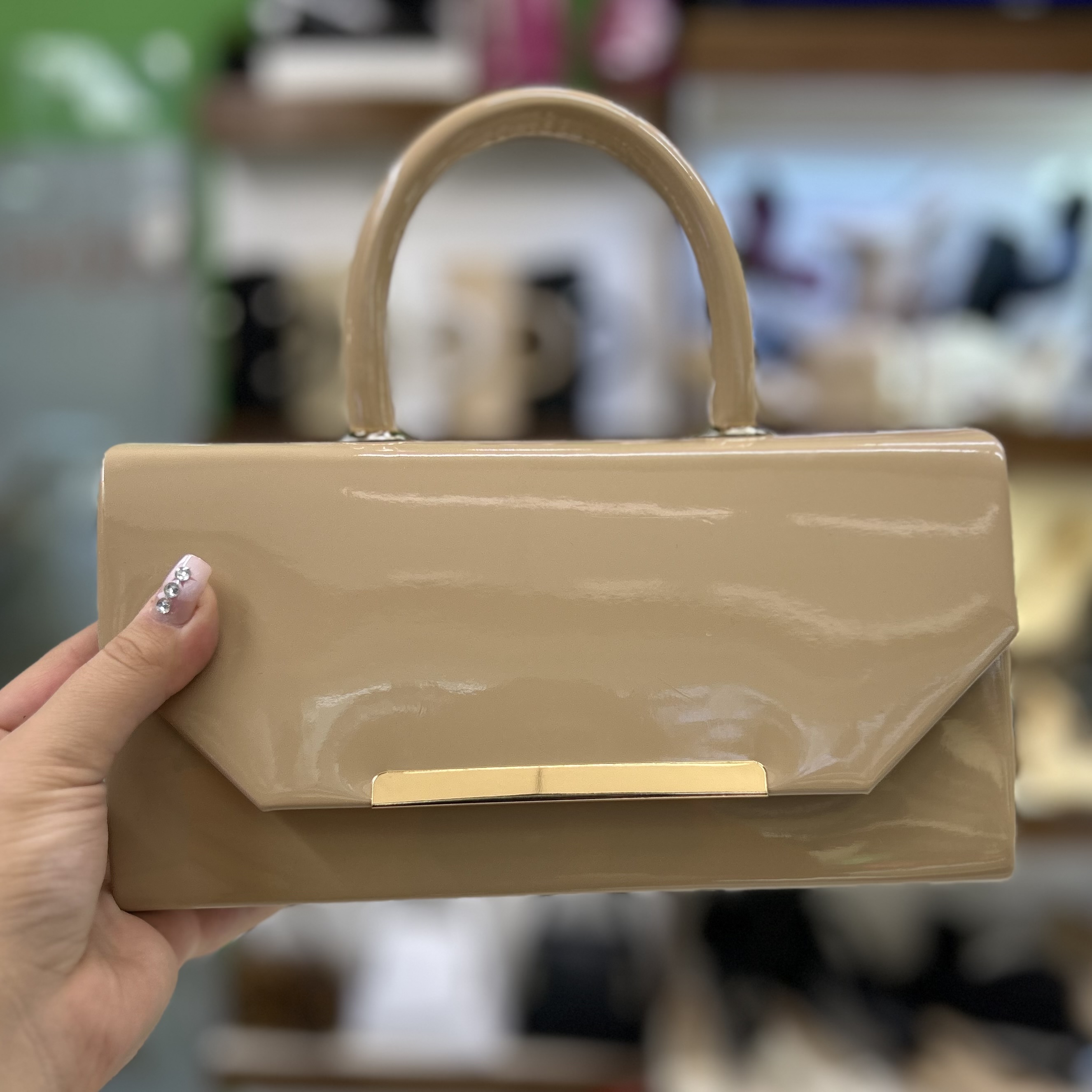 کیف مجلسی زنانه دسته دار ورنی شیک | در رنگ بندی مشکی و کرم