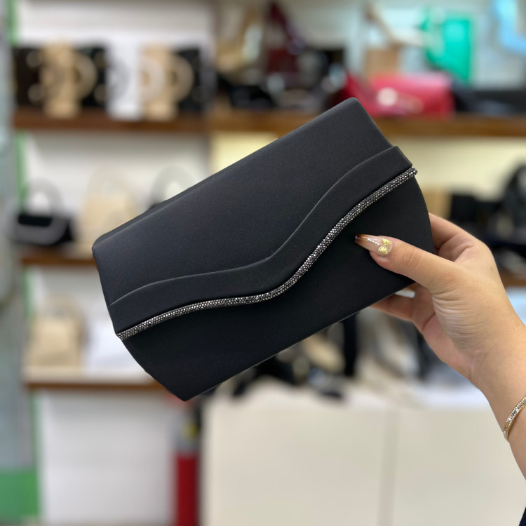 کیف شب فول نگین مجلسی زنانه ، پشت کیف چرم ساده سفید ، دارای بند بلند زنجیری و دسته دار