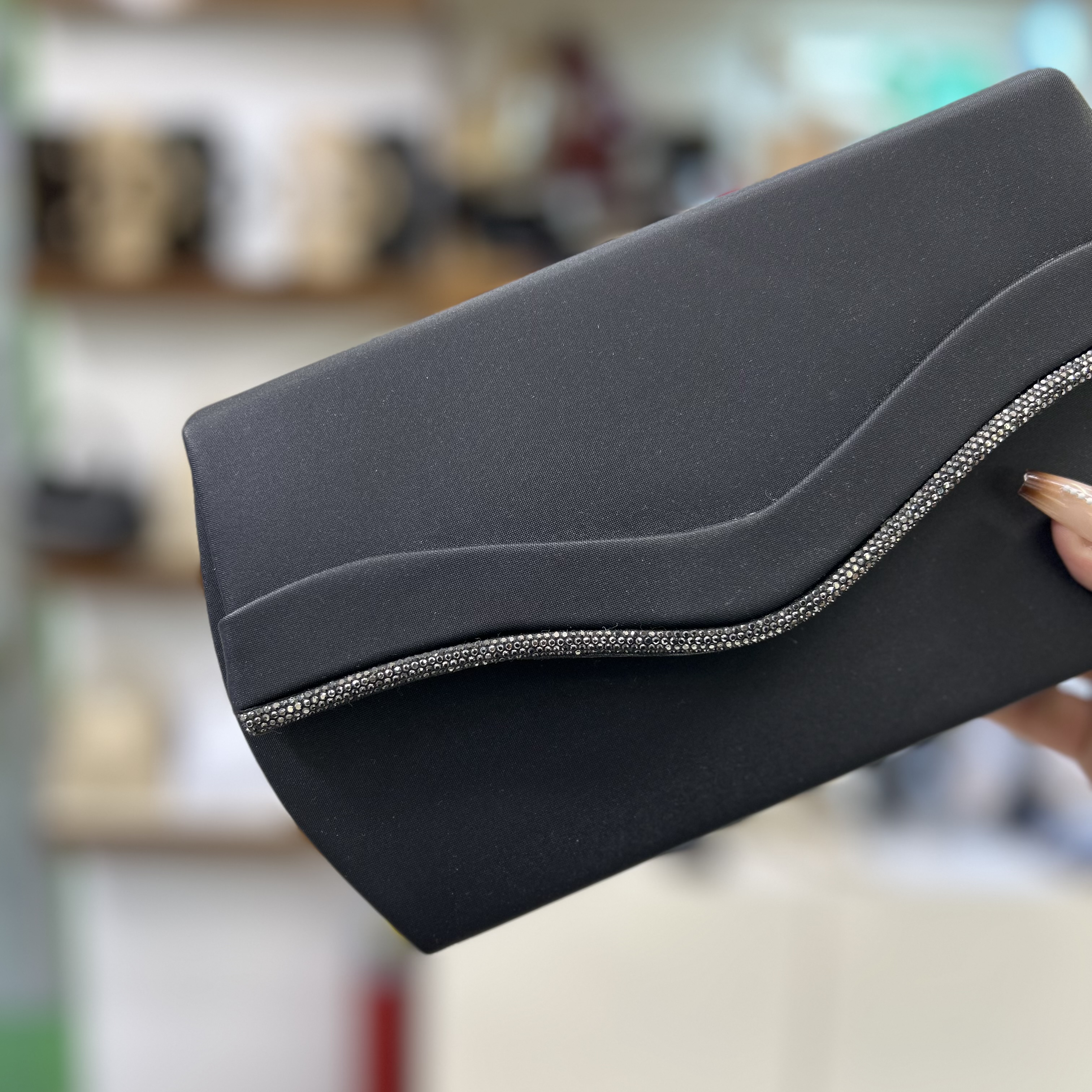 کیف شب فول نگین مجلسی زنانه ، پشت کیف چرم ساده سفید ، دارای بند بلند زنجیری و دسته دار