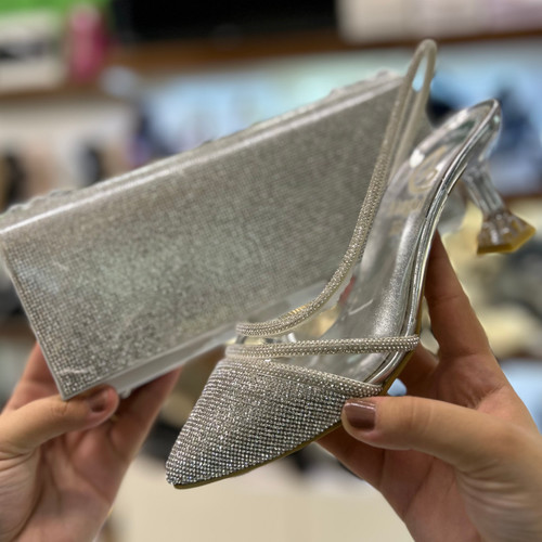 ست کیف و کفش مجلسی طلقی نقره ای کد ۲۴۴/۱