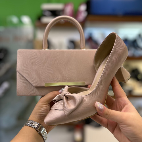 ست کیف و کفش زنانه پاپیونی ساتن گلبهی کد ۲۹۹/۳